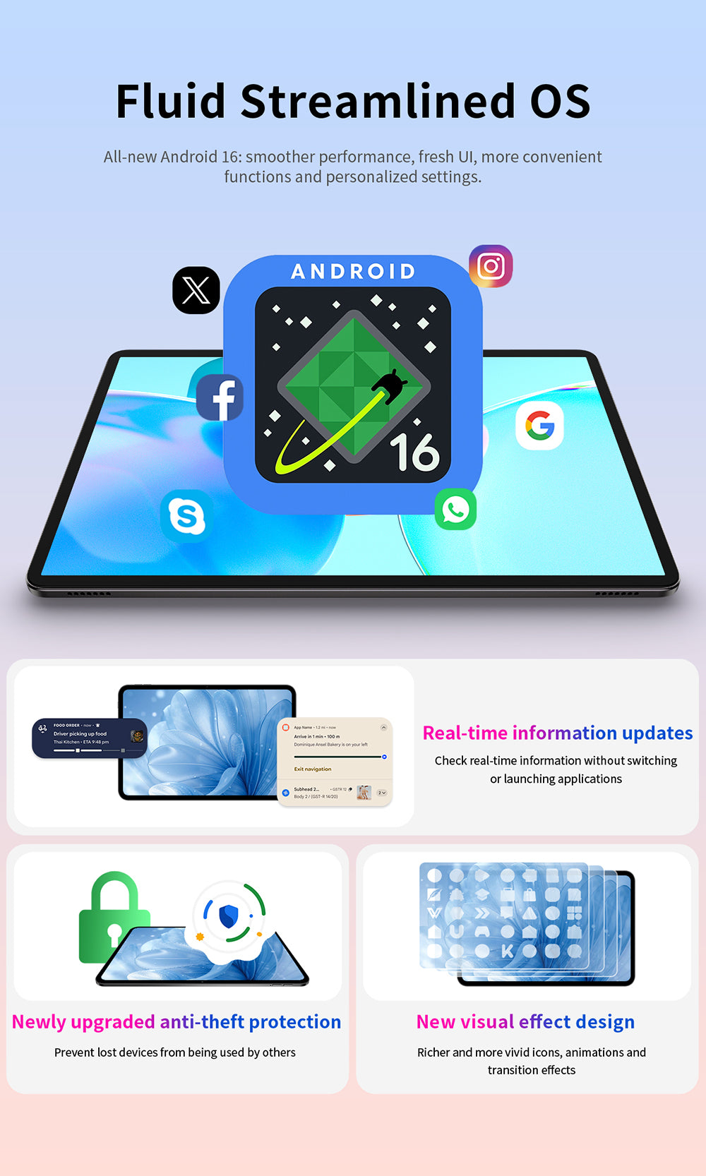 [Optimized Android 16] Android 16 brings all-new capabilities, making the P50T tablet more responsive and intuitive in everyday use. Teclast's custom optimizations offer a richer array of customization for an enhanced experience.