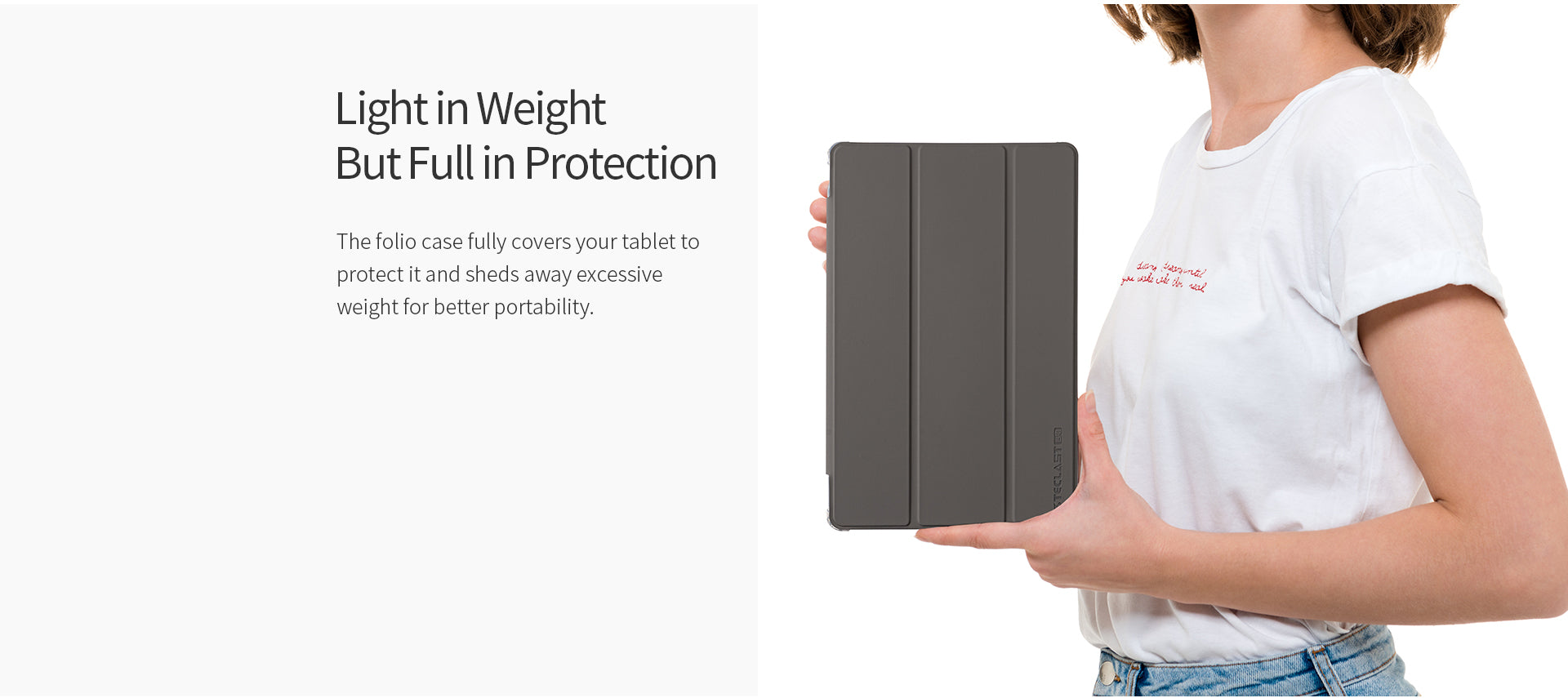 Il Custodia Folio copre completamente il tuo tablet per proteggerlo e elimina il peso eccessivo per una migliore portabilità.