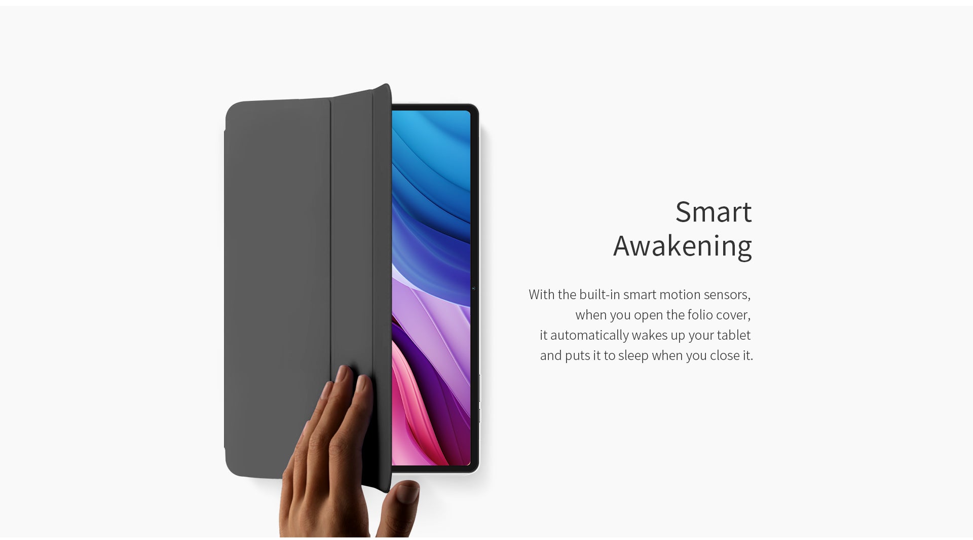 Con i sensori di movimento intelligenti integrati, quando apri la custodia Folio, il tablet si riattiva automaticamente e lo mette in modalità di sospensione quando la chiudi.