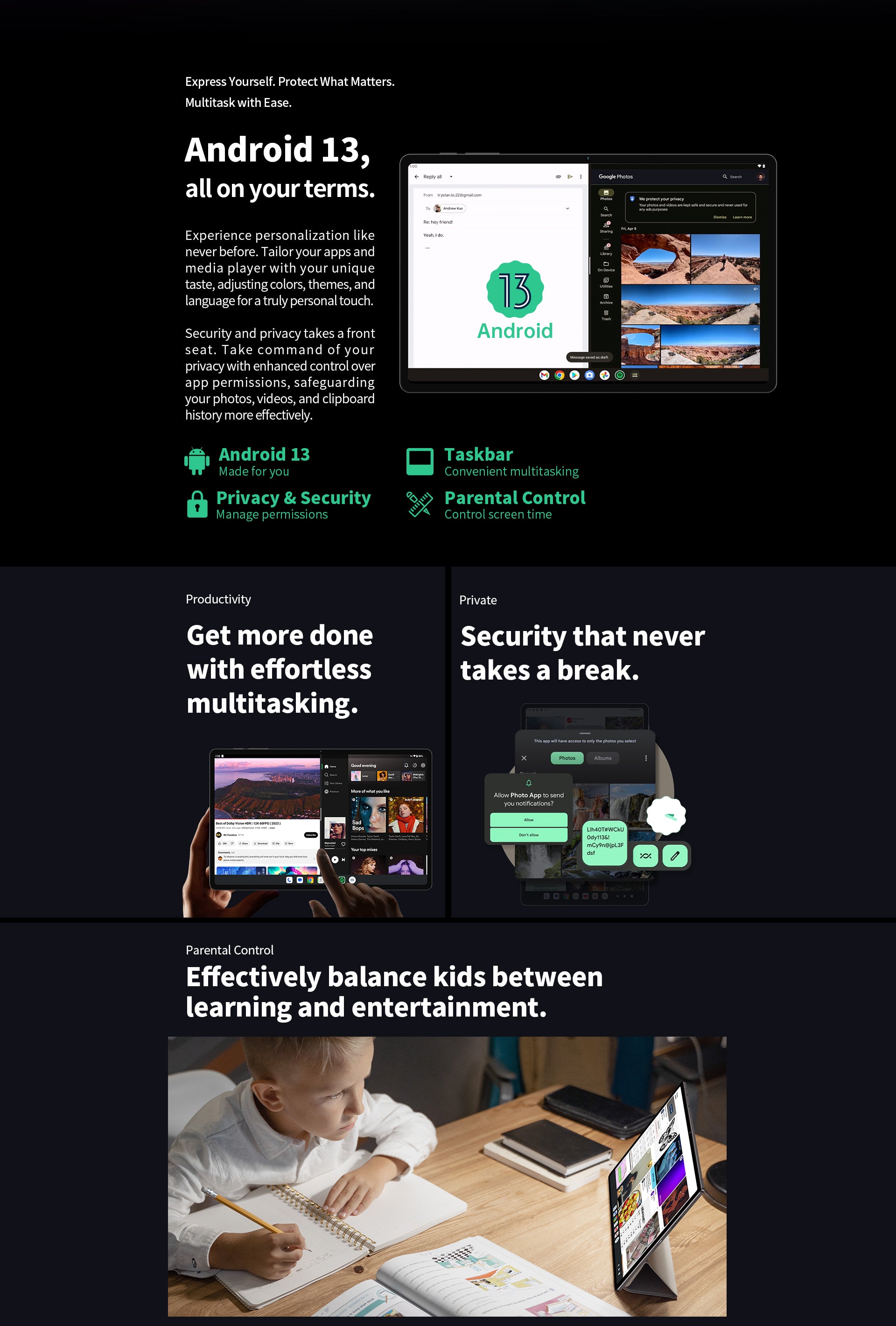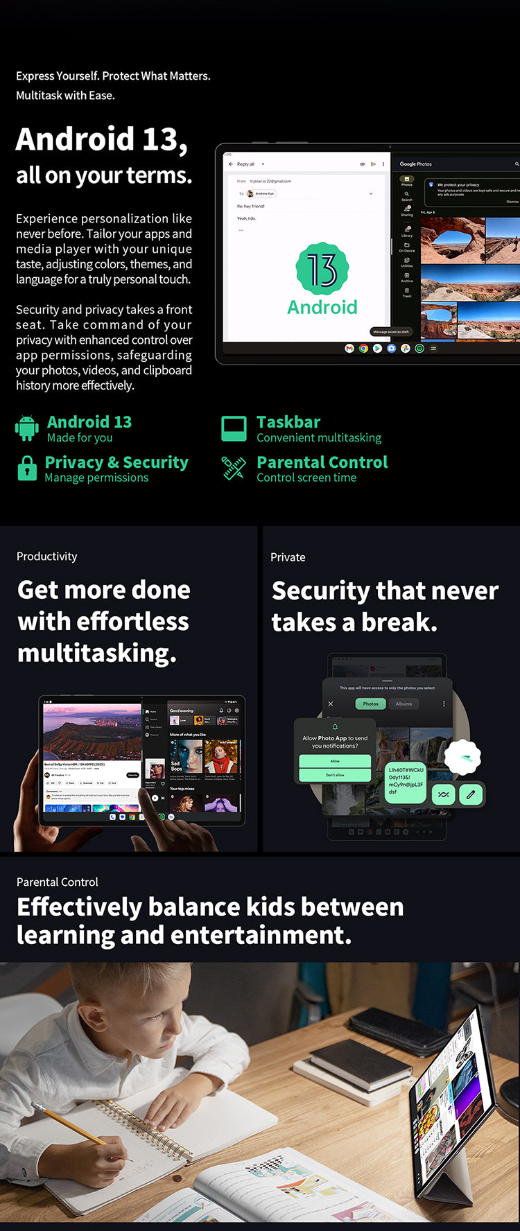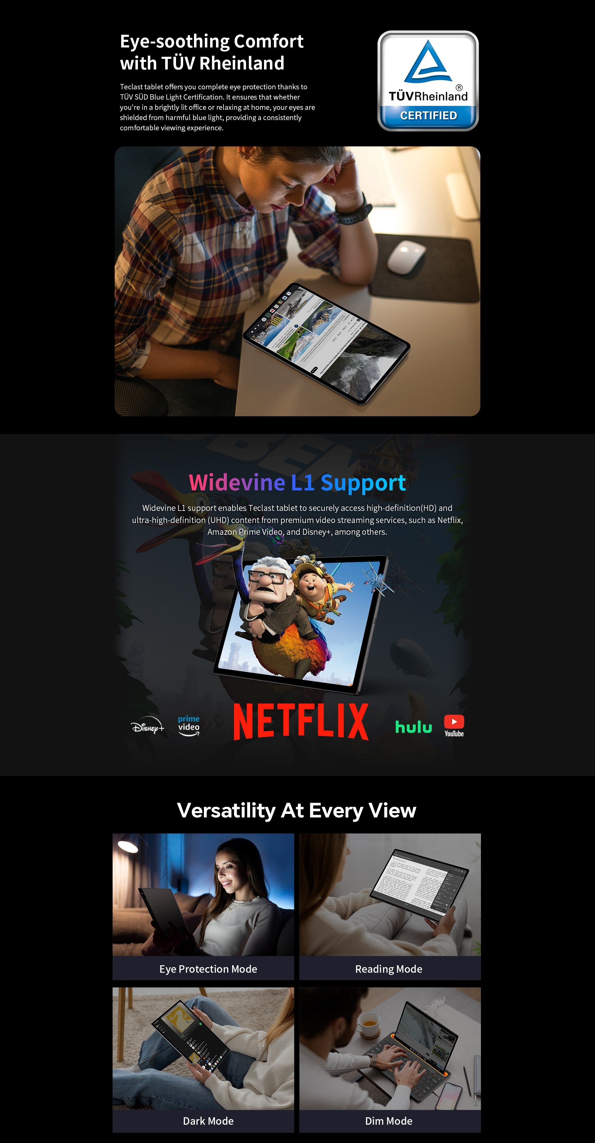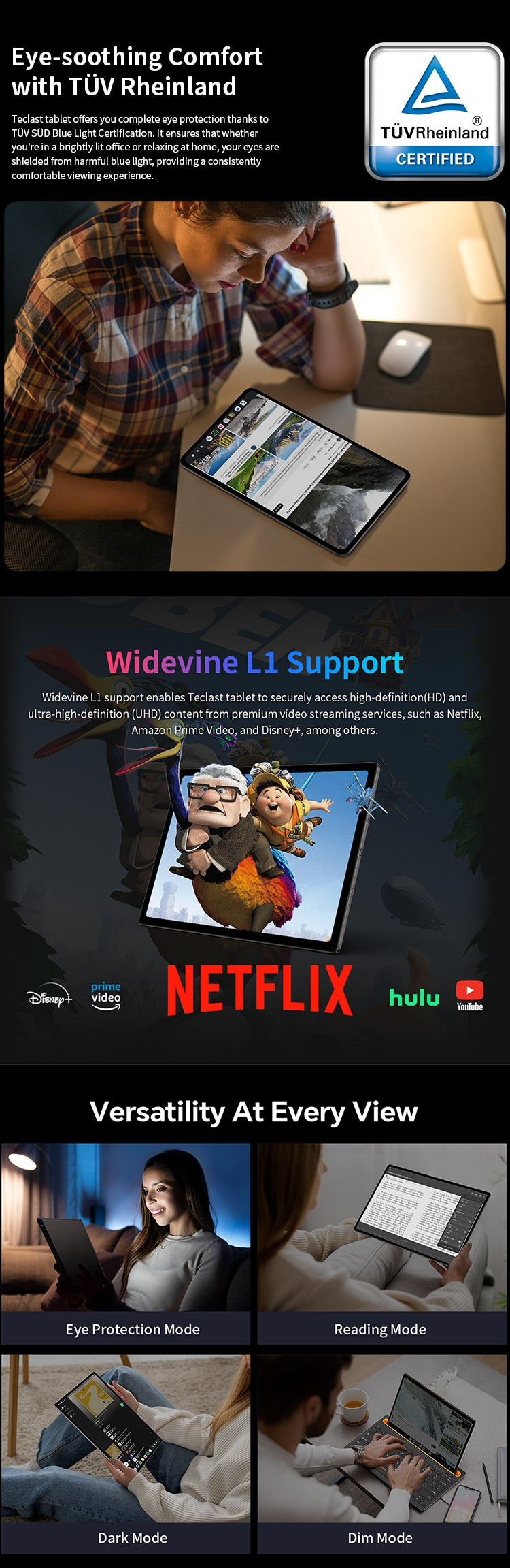 [Esperienza avanzata con Android 14] Dotato di Android 14, Teclast il tablet T45HD offre una vista parallela ottimizzata per il panorama e una comoda barra delle applicazioni per un multitasking efficiente e robuste opzioni di controllo parentale per un utilizzo sicuro.