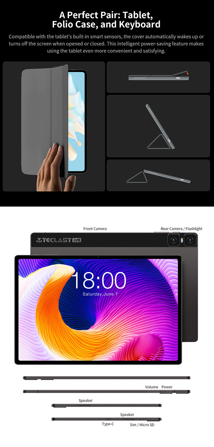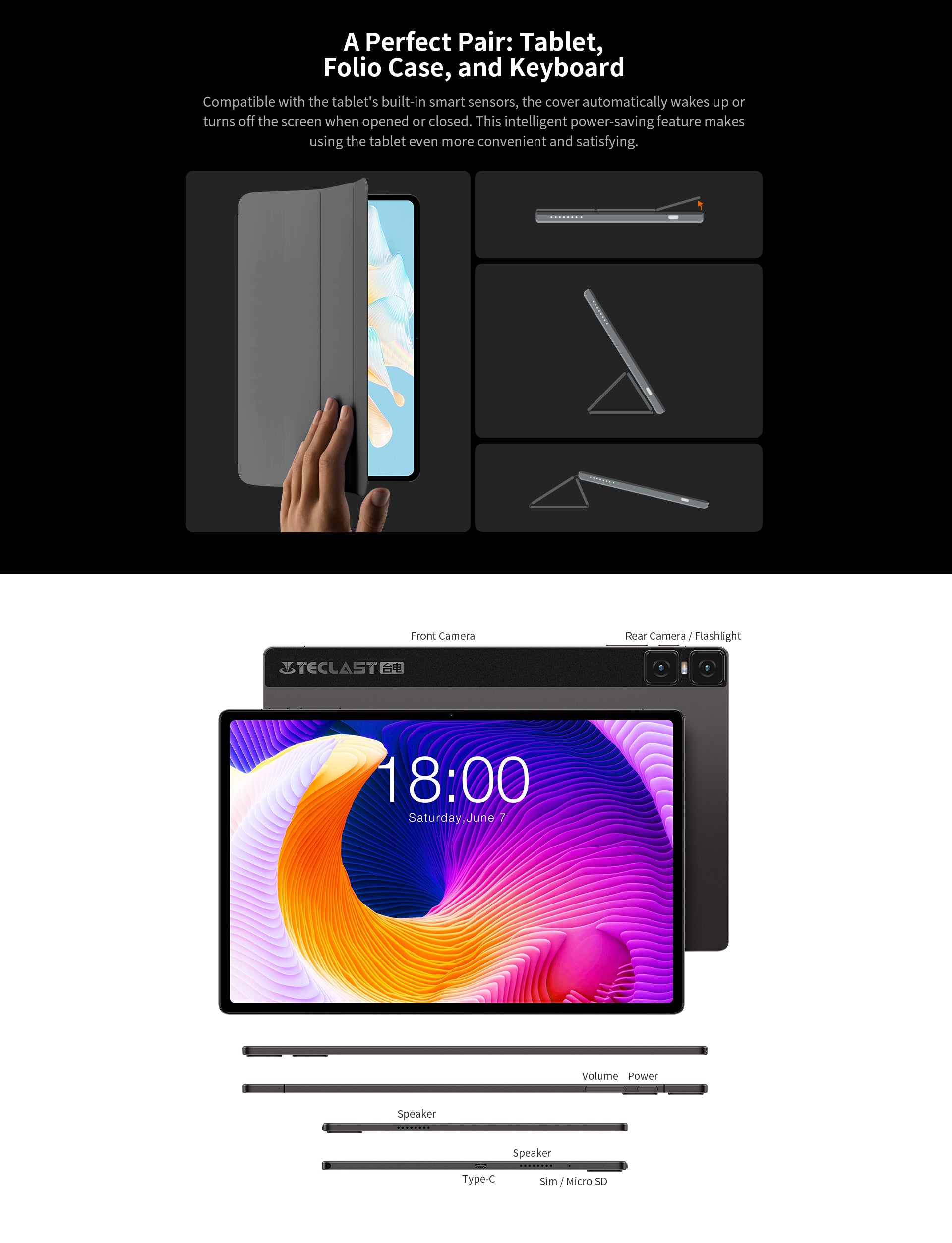 - [Smart Sensor] Teclast T45HD è dotato di un sensore Hall per un'esperienza tablet ottimale. Abbinalo al T45HD Custodia Folio per un risveglio intelligente.