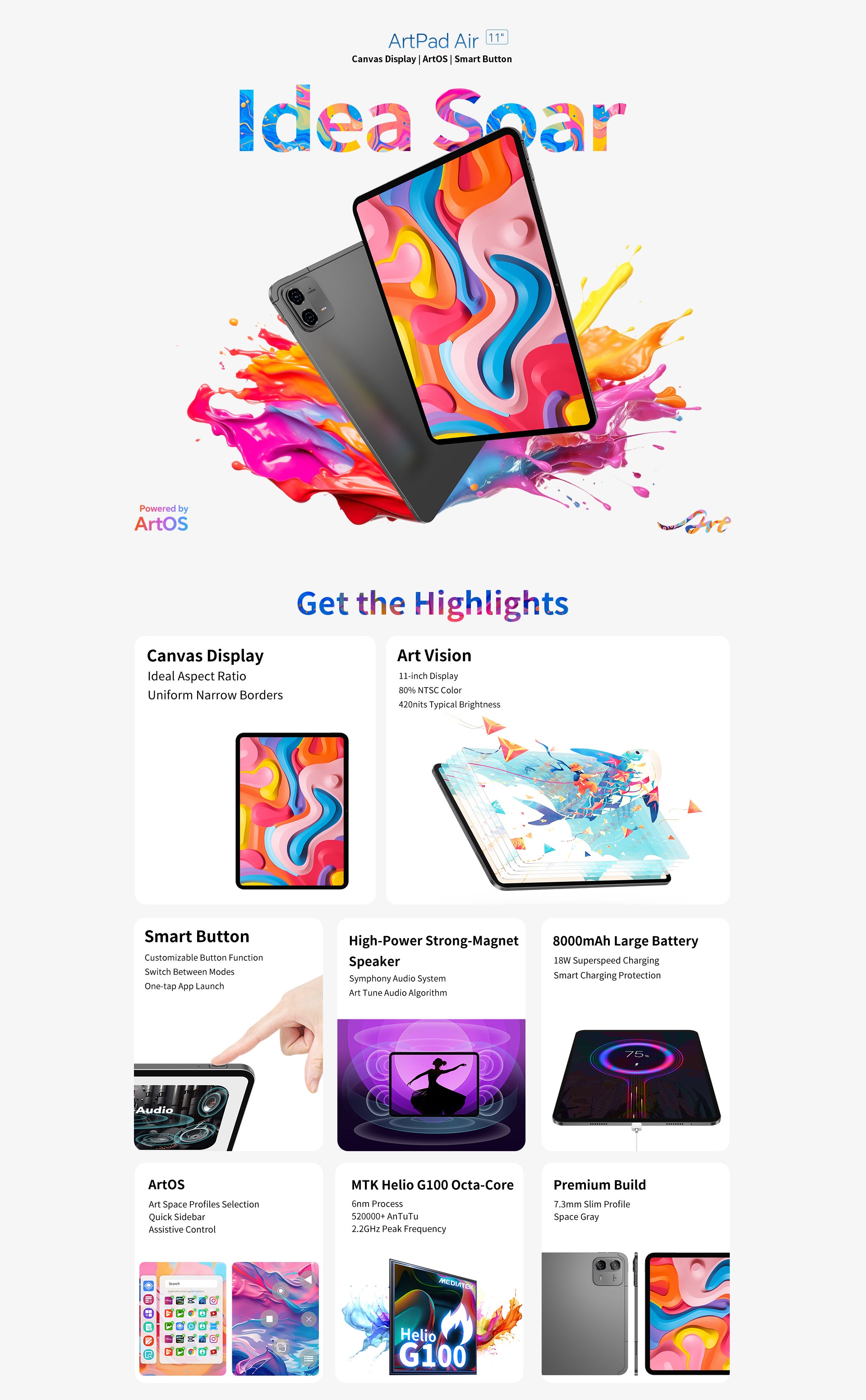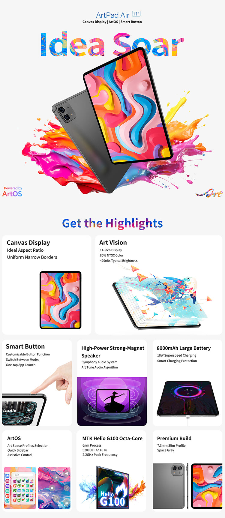 [Art Vision] The 11-inch display offers a large, vivid screen that provides the best visual experience for your artistic work. every detail comes to life in crystal-clear resolution, ensuring that your creations are represented with stunning clarity.