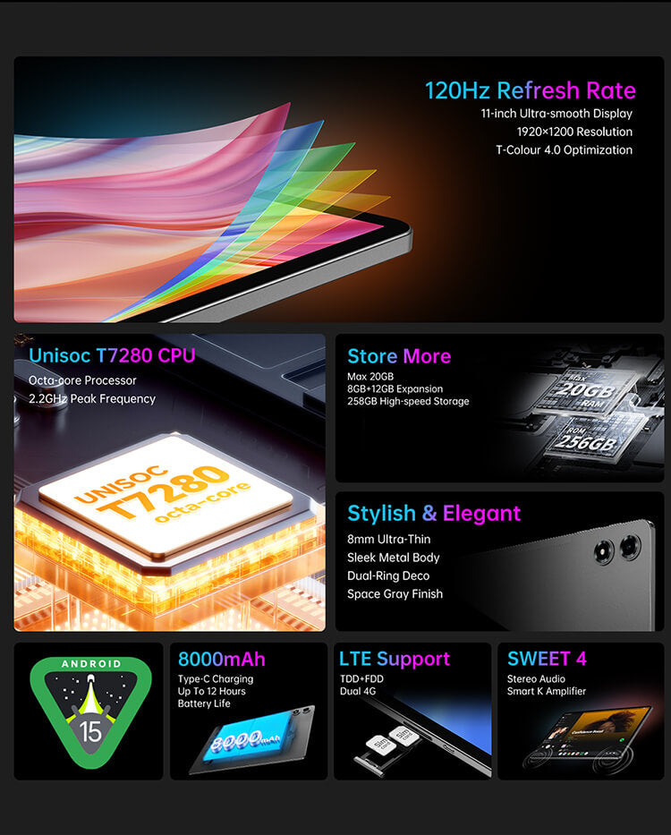 [鮮やかで滑らかな映像] 120Hz AdaptiveSync リフレッシュ レートと 1920x1200 解像度の IPS パネルを備えた 11 インチ フル HD ディスプレイは、仕事とエンターテイメントの両方でスムーズで鮮やかな映像を実現します。