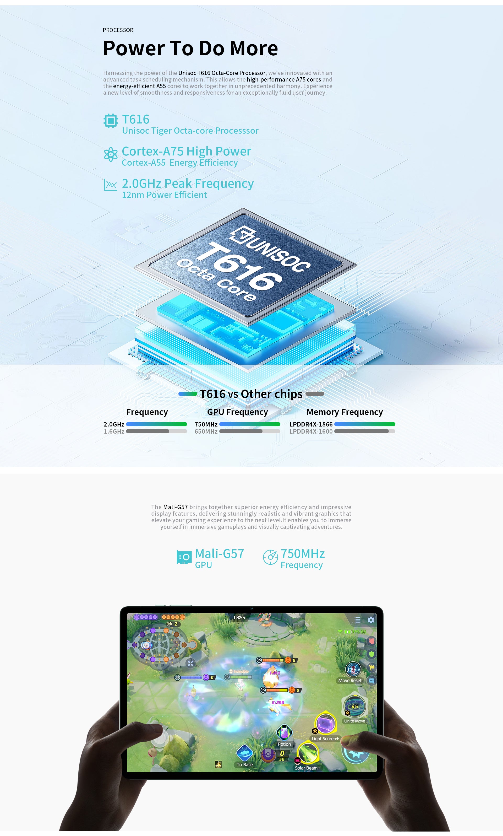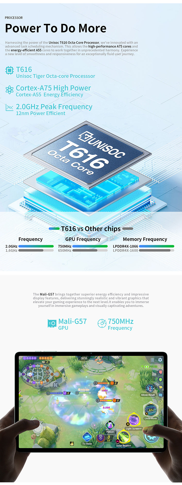 [Powerful Processor] M50 Pro is equipped with the powerful T616 octa-core processor, which is both power-saving and high-performance, and the Mail-G57 GPU takes your audio-visual experience up a notch.
