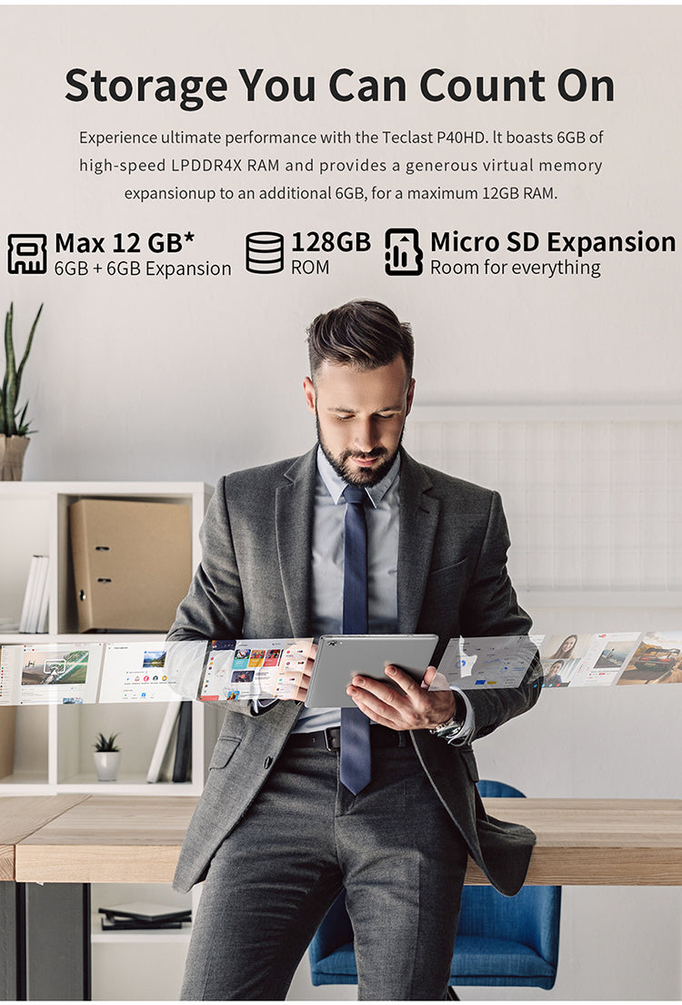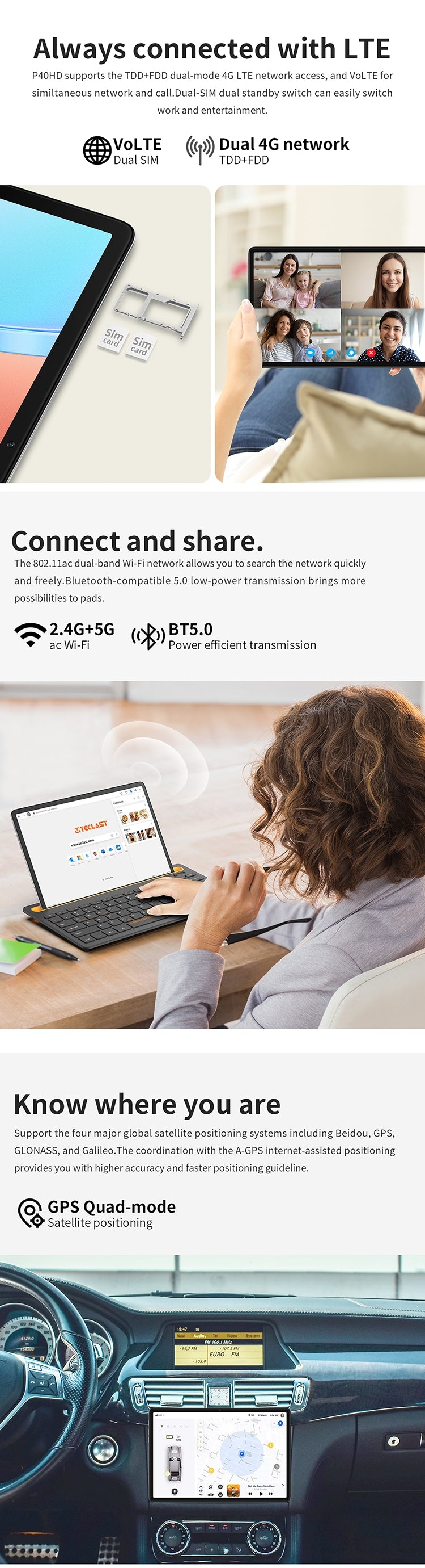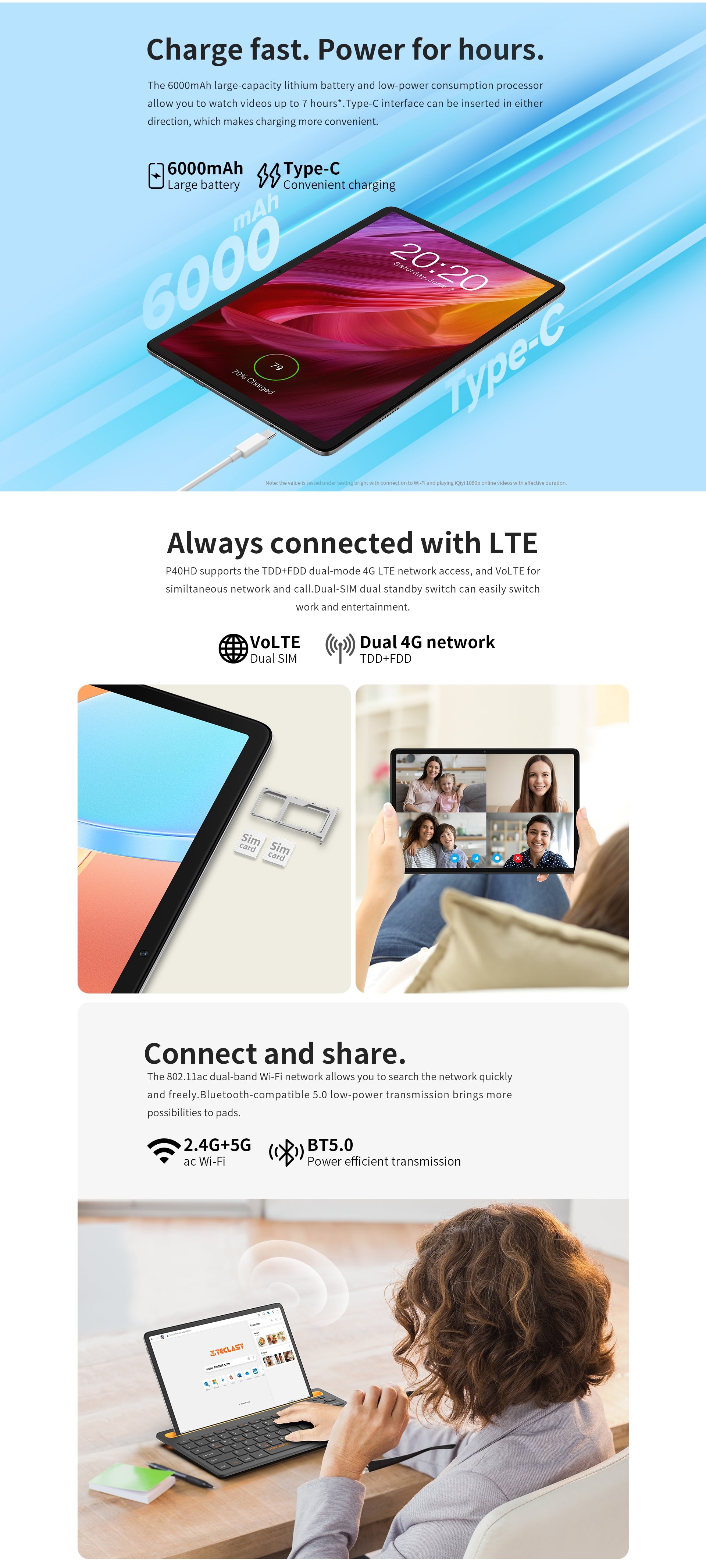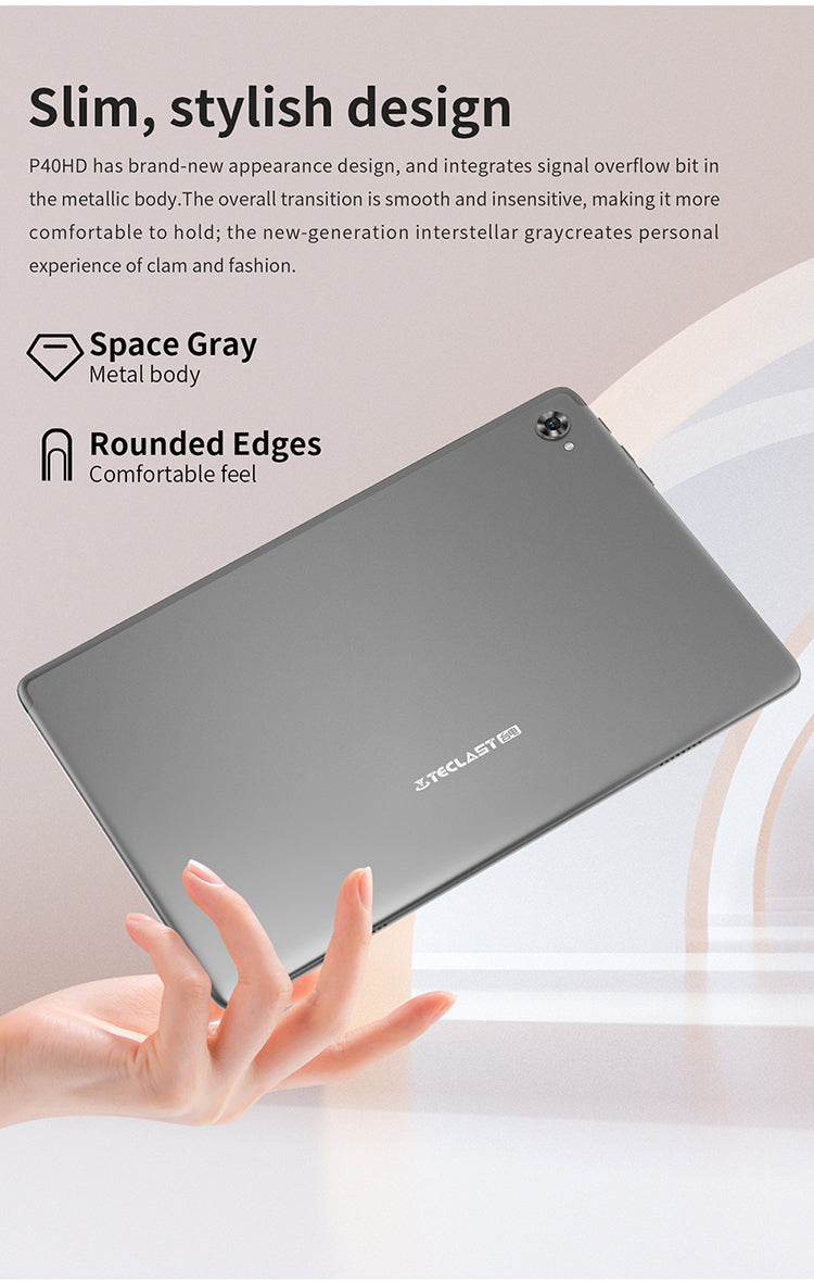 [Brilliant display, Brilliant size] P40HD features a 10.1-inch IPS wide viewing angle display, with 1920X1200 HD resolution, ensuring a great visual experience with games and videos. A 16:10 golden aspect ratio is optimized for content consumption on the go.