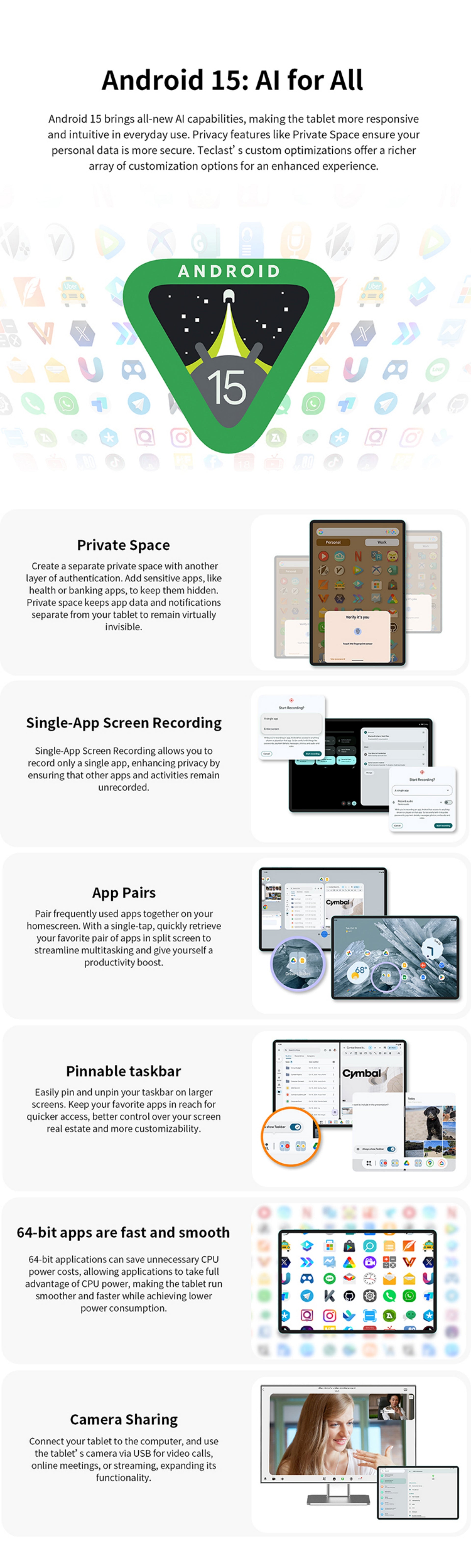 [Latest Android Experience] Enjoy a smooth, secure, and customizable experience with the latest Android system. Teclast's optimizations enhance convenience and efficiency for everyday use.