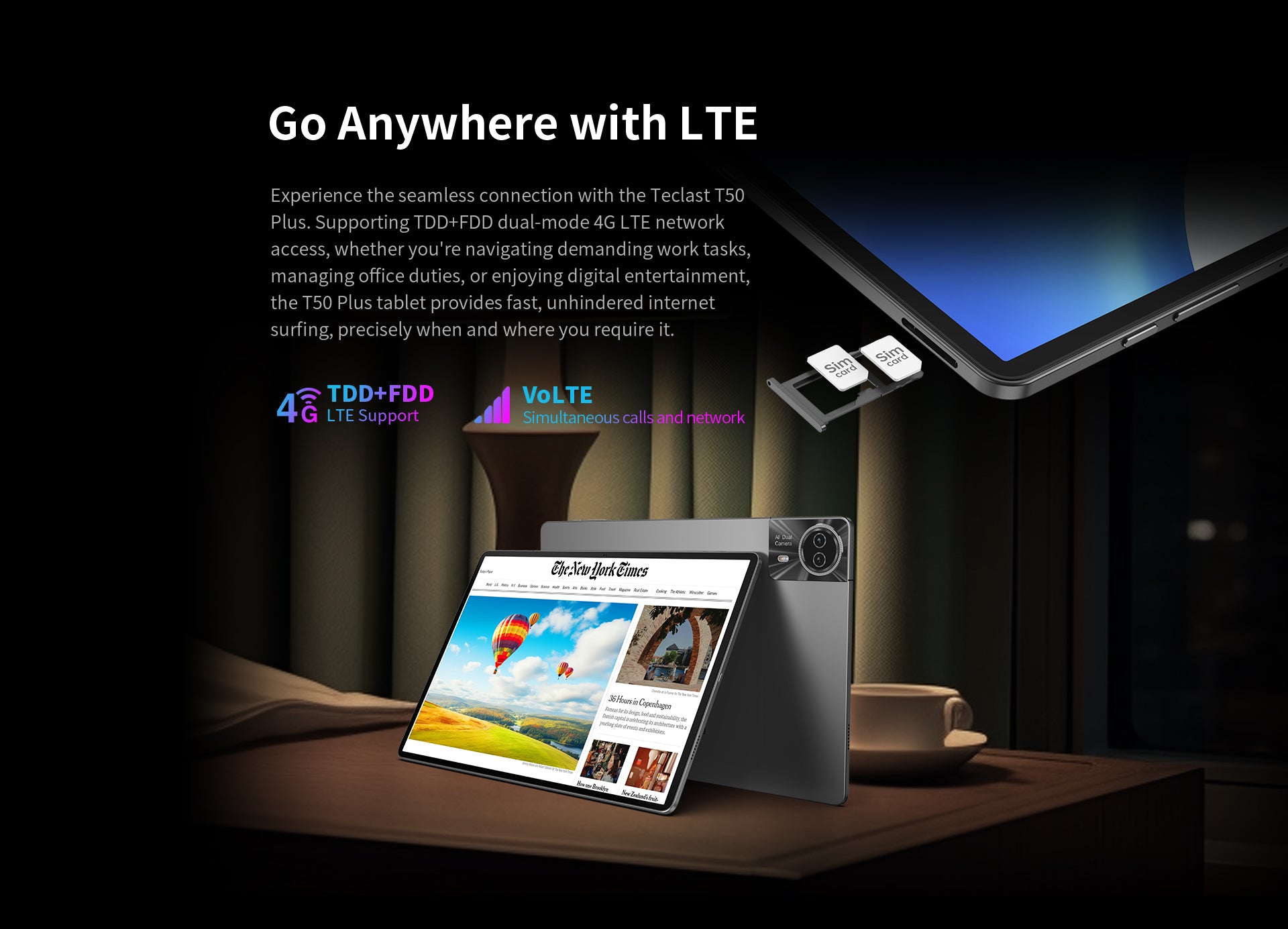 [High-Quality Photos] Capture stunning images with the 13MP rear camera and enjoy clear video calls with the 8MP front camera. Whether you're taking photos or engaging in video chats, the Teclast T50 Plus ensures exceptional visual quality and clarity.