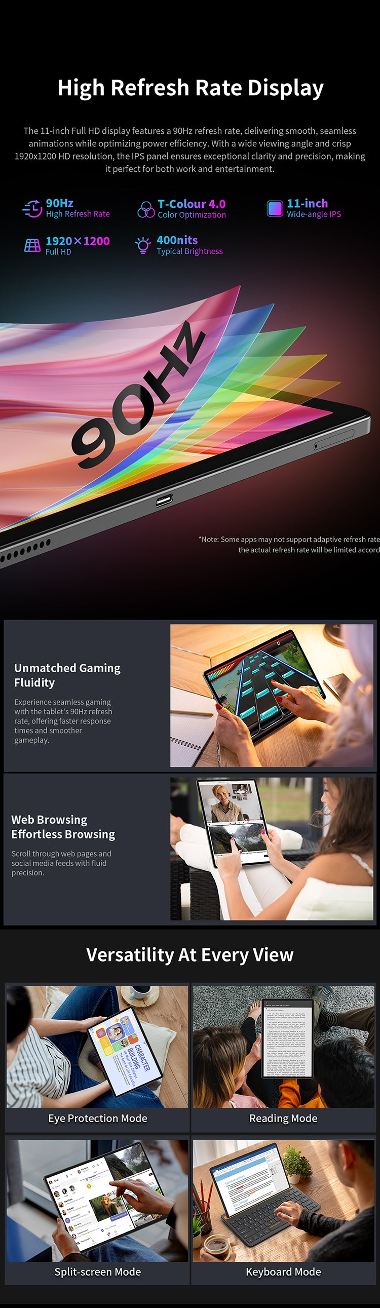 [Smooth, Seamless Visuals] The 11-inch Full HD screen offers fluid animations and vibrant visuals. The 120Hz AdaptiveSync refresh rate ensures smooth motion. The 1920x1200 resolution IPS panel delivers stunning clarity, perfect for both work and entertainment.
