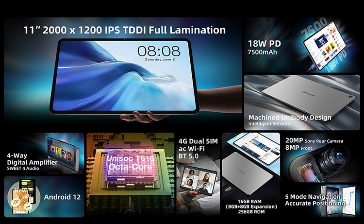 [Powerful Octa Core Processor] T50 uses UNISOC Tiger T616 and goes all out with up to 16GB RAM (8GB+8GB RAM Expansion) and 128GB storage.
