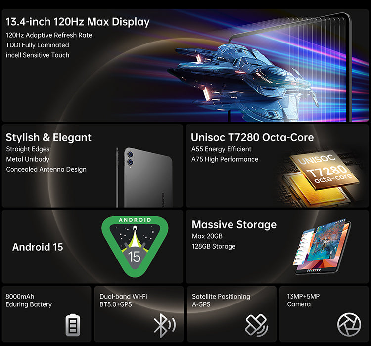 [Immersive 120Hz Display] Enjoy ultra-smooth visuals on a 13.4-inch display with a 120Hz adaptive refresh rate, TDDI full lamination, and incell sensitive touch—perfect for streaming, browsing, and creative work.