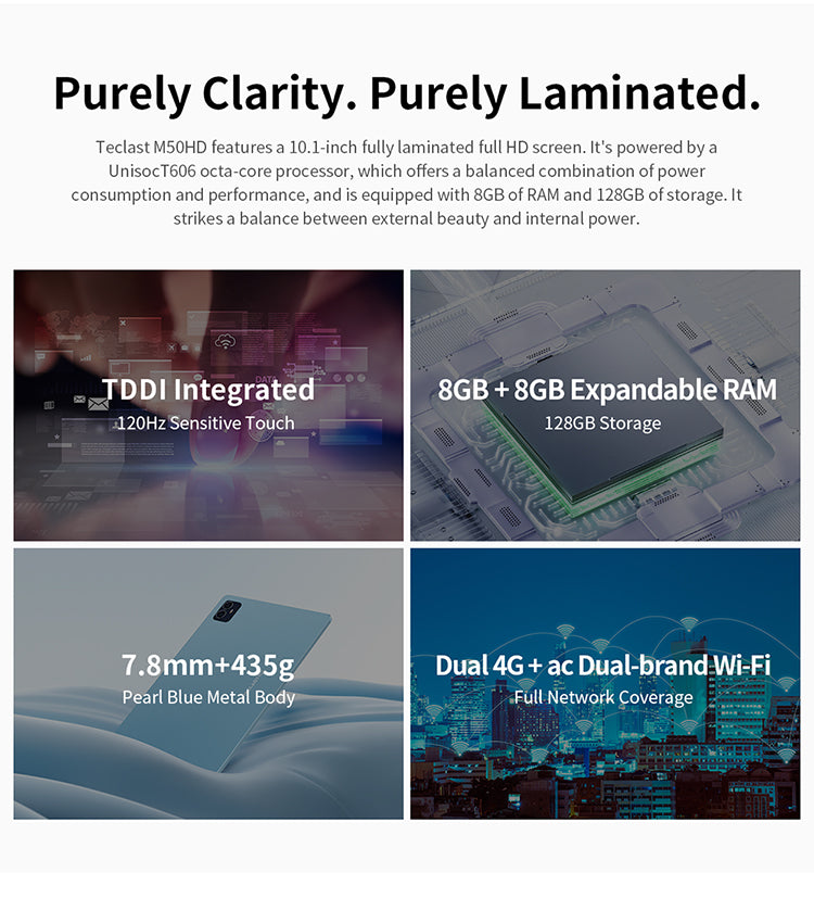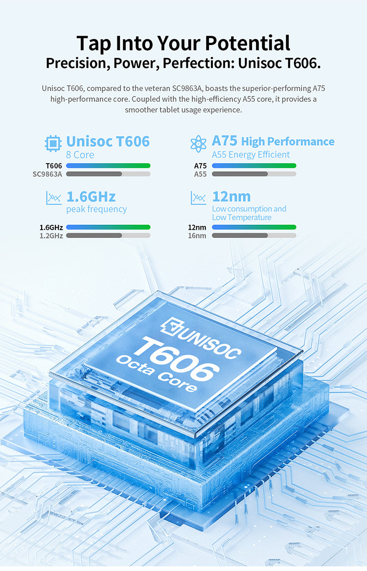 - [Powerful Processor] M50HD boasts the T606 octa-core processor, delivering high performance while being energy-efficient. Its Mail-G57 GPU makes the game graphics cooler and more realistic.