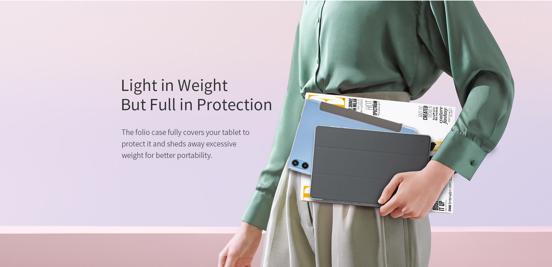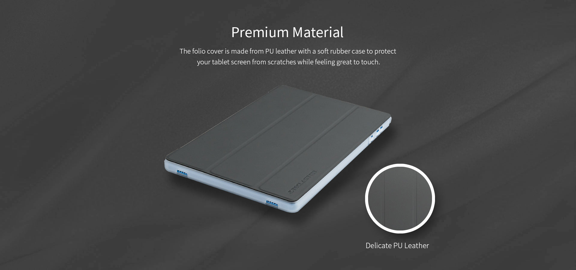 A capa fólio é feita de couro PU com um estojo de borracha macia para proteger a tela do tablet contra arranhões e, ao mesmo tempo, proporcionar uma ótima sensação ao toque.