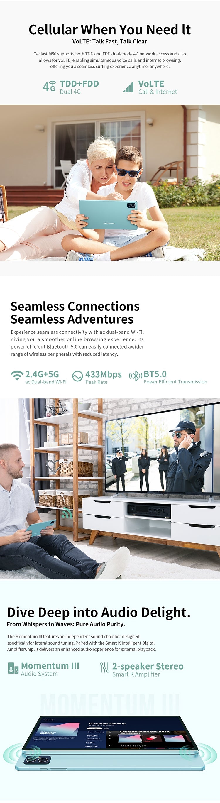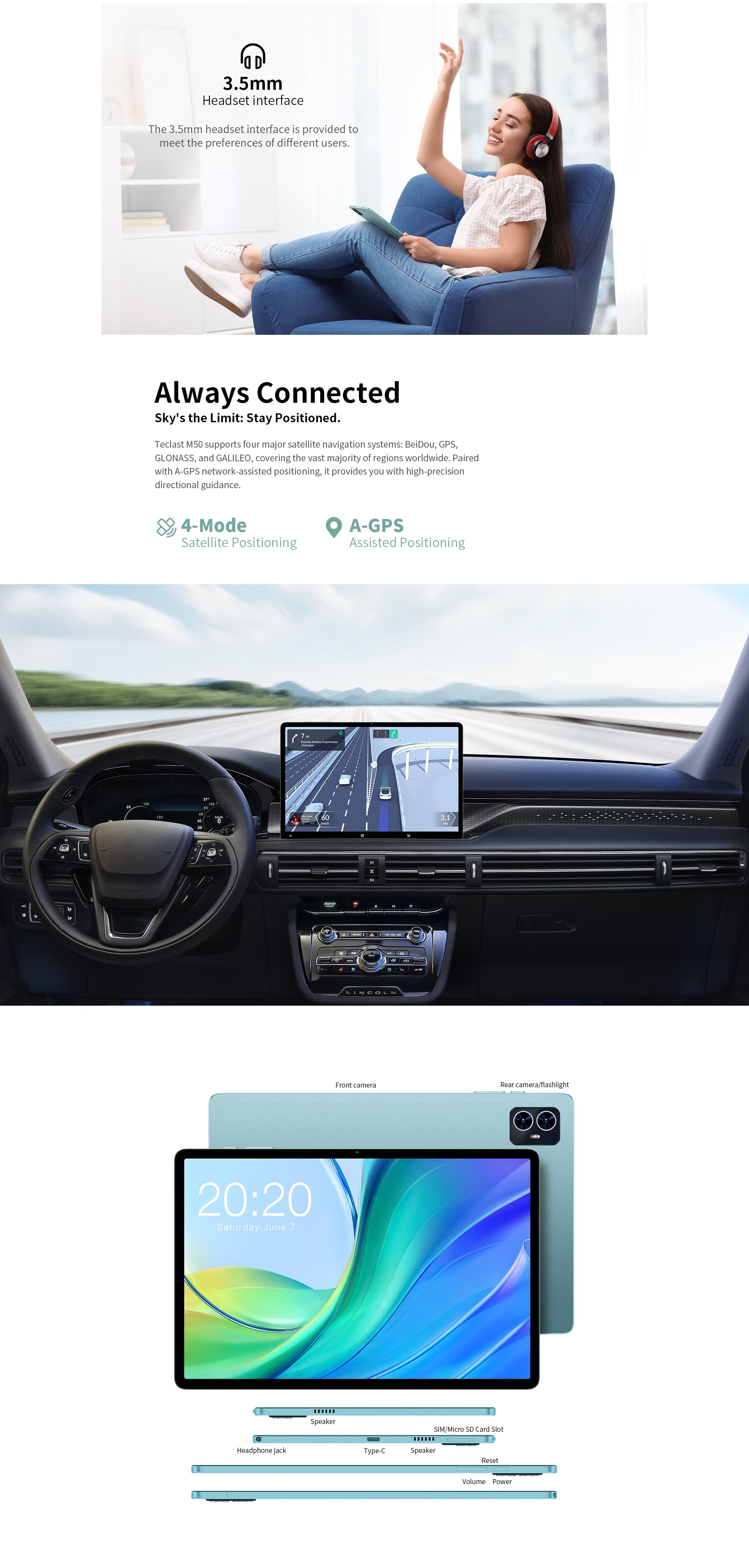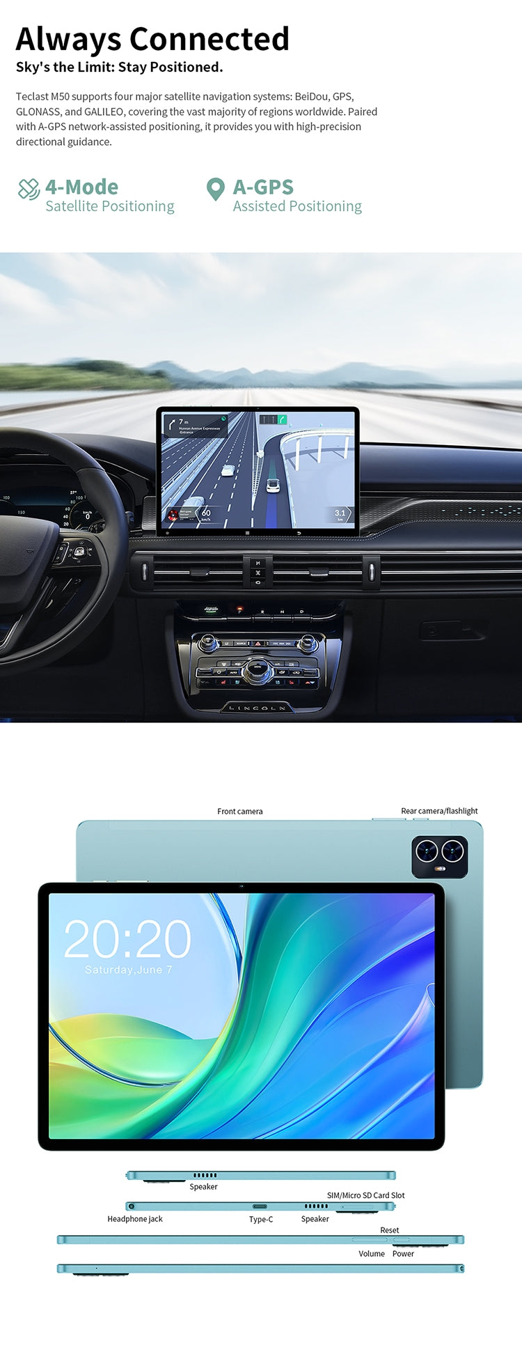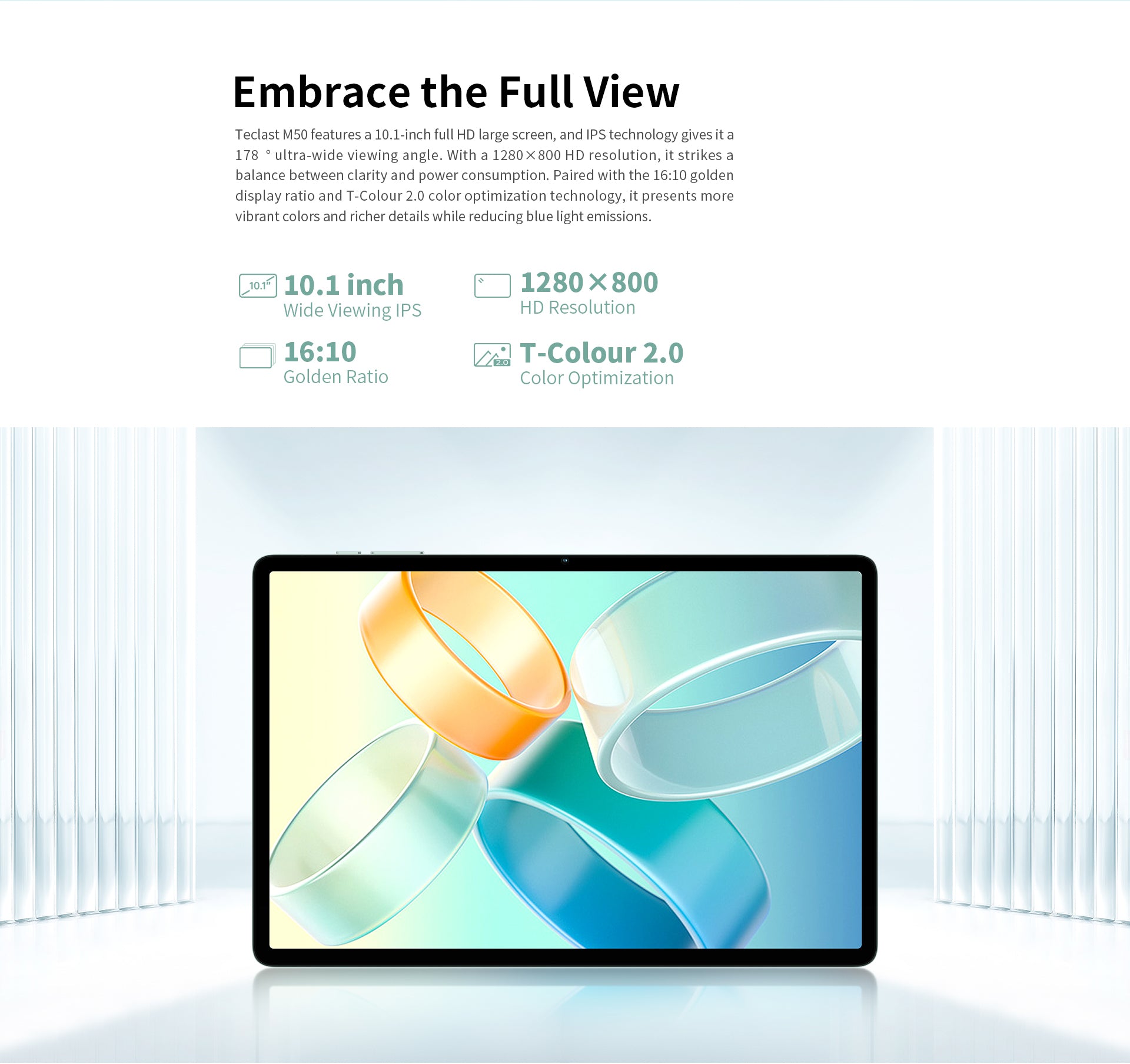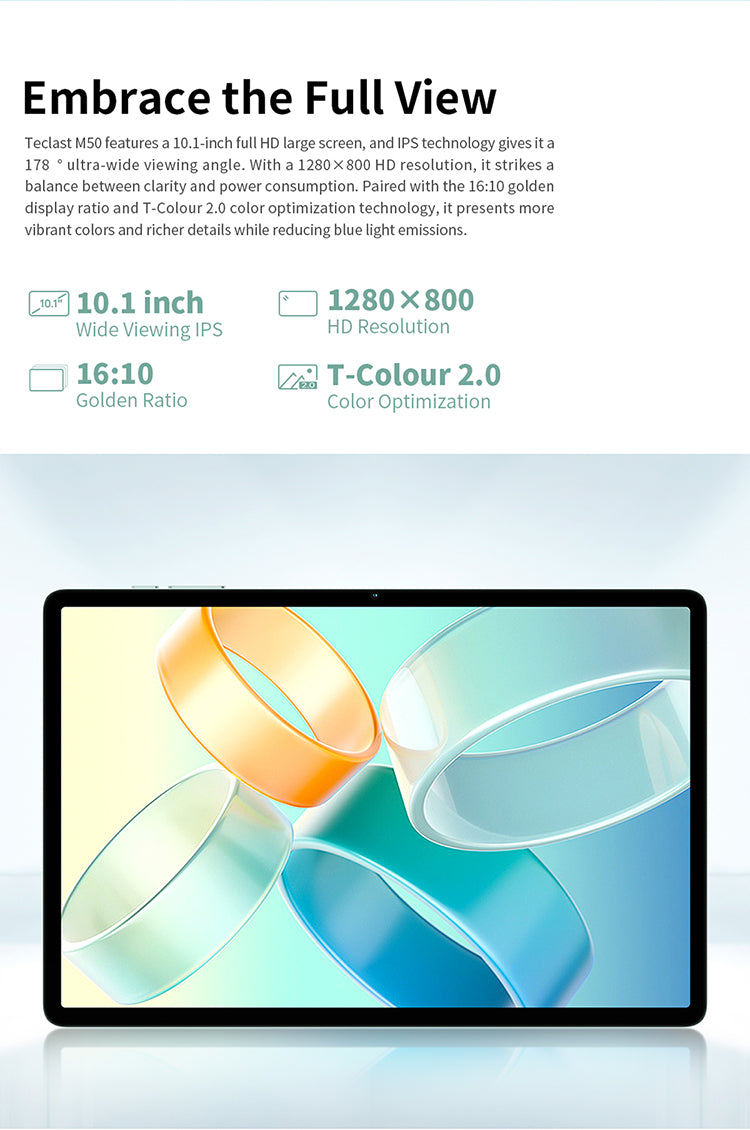[Потрясающий дисплей] M50 оснащен 10,1-дюймовым IPS-экраном с разрешением 1280x800 и замечательным соотношением сторон 16:10, привлекающим зрителей к захватывающему визуальному наслаждению. Частота обновления 90 Гц обеспечивает плавное и плавное изображение, повышающее качество просмотра.
