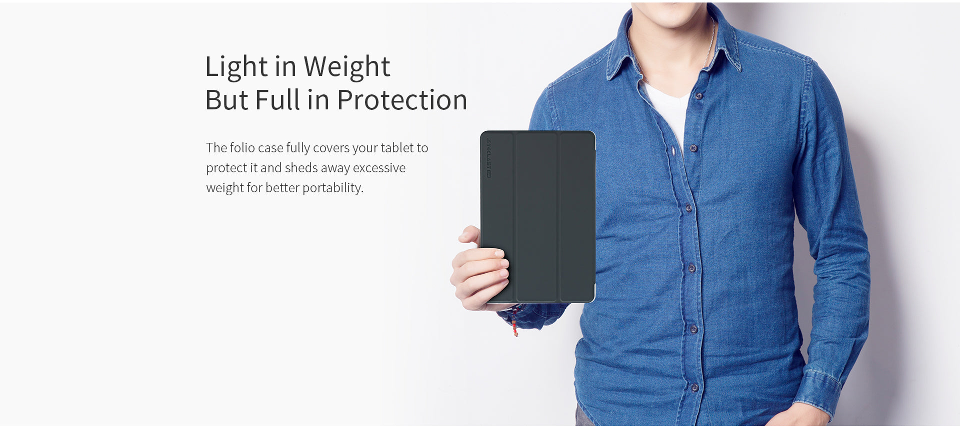 Чехол-Книжка полностью закрывает планшет, защищая его, и снижает лишний вес для большей портативности.
