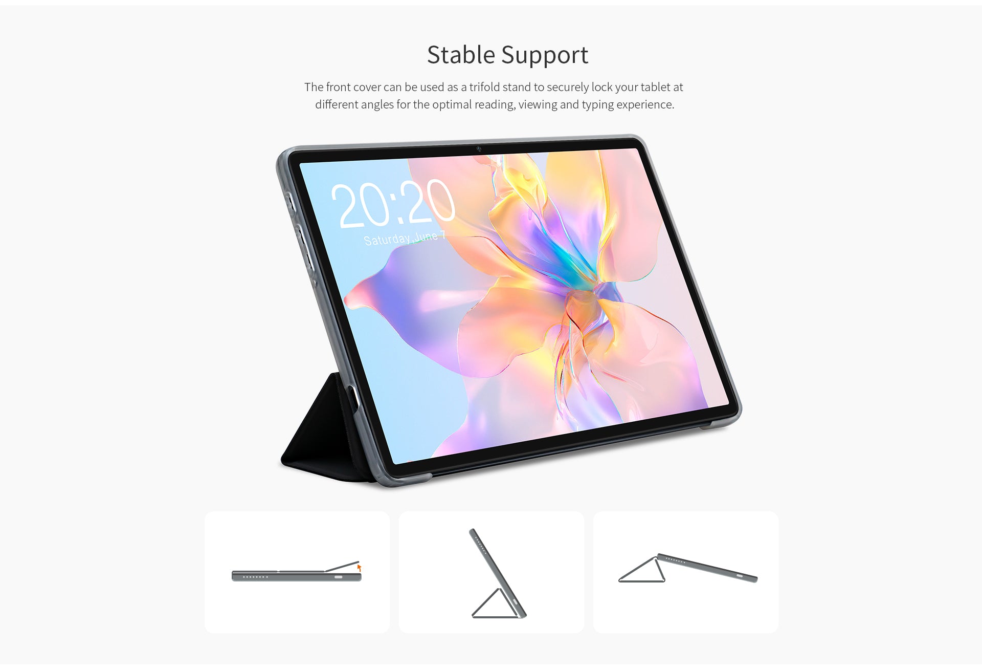 Переднюю крышку можно использовать как тройную подставку для надежной фиксации планшета под разными углами для оптимального чтения, просмотра и опыт печати.