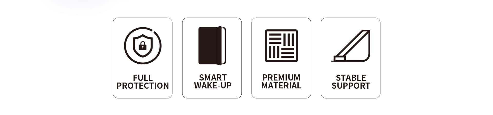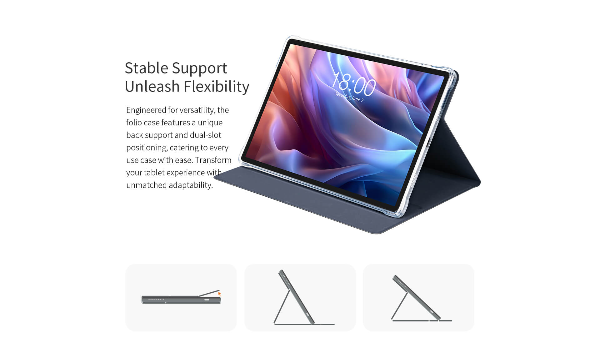 Переднюю крышку можно использовать в качестве тройной подставки для надежной фиксации планшета под разными углами для оптимального чтения, просмотра и просмотра. опыт набора текста.