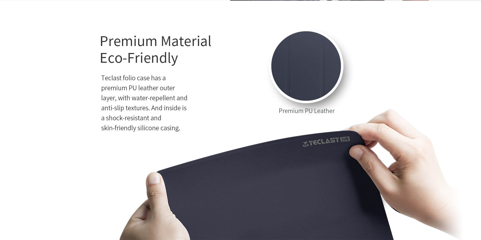 Обложка-книжка изготовлена из искусственной кожи с мягкий резиновый чехол для защиты экрана планшета от царапин и приятный на ощупь.