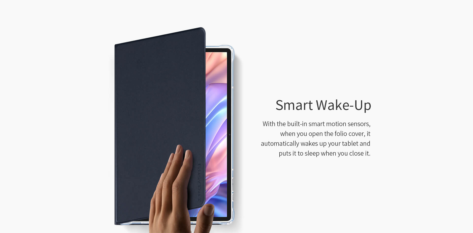Благодаря встроенным интеллектуальным датчикам движения, когда вы открываете обложку-книжку, планшет автоматически выводится из спящего режима, когда вы ее закрываете.