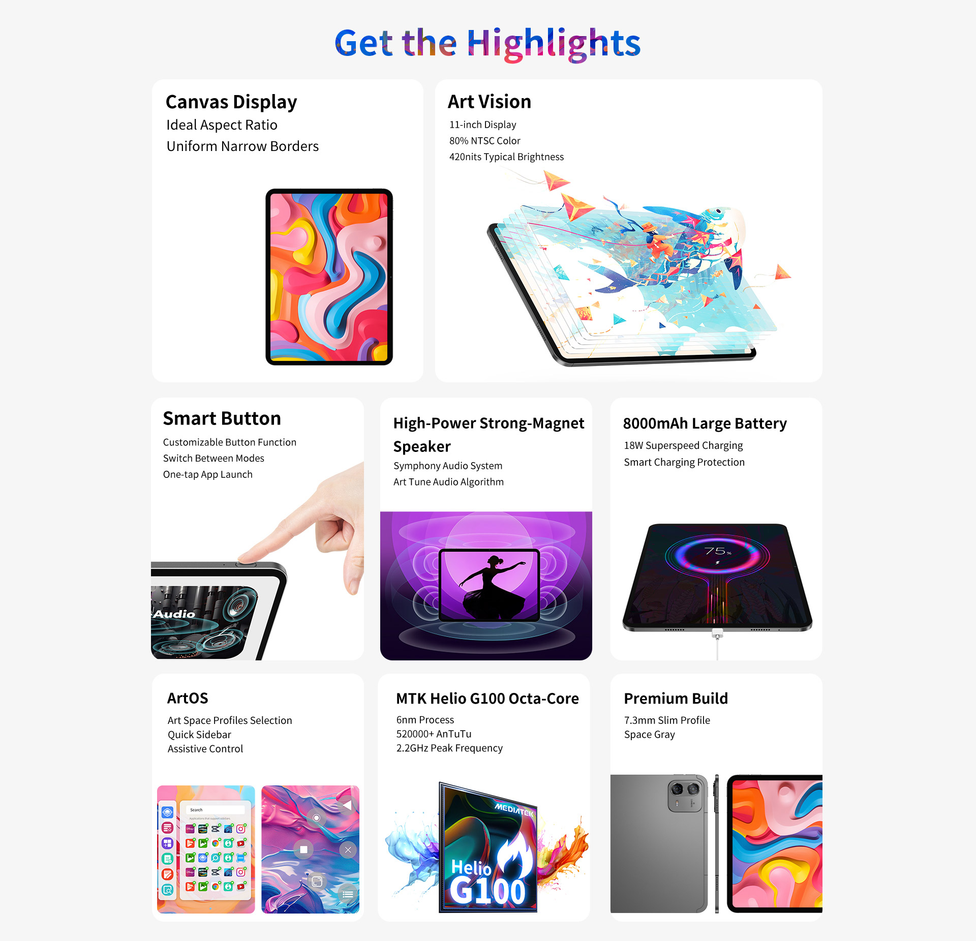 [Extended Battery Life] With a massive 8,000mAh battery, you can keep creating for hours without needing to recharge. The 18W superspeed charging ensures you can power up quickly and get back to work without any unnecessary downtime. Smart charging protection provides safety against overcharging and overheating.