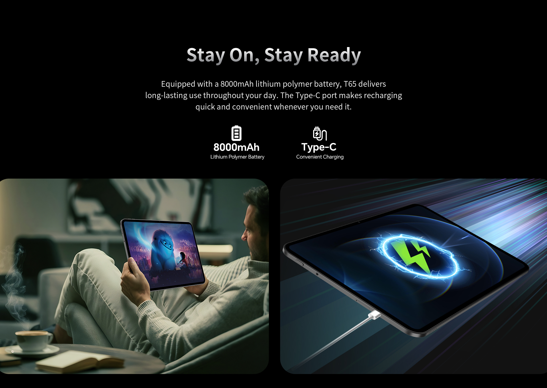 [Long-lasting Battery] Equipped with an 8000mAh battery and Type-C charging, the T65 keeps you powered through hours of productivity and play.