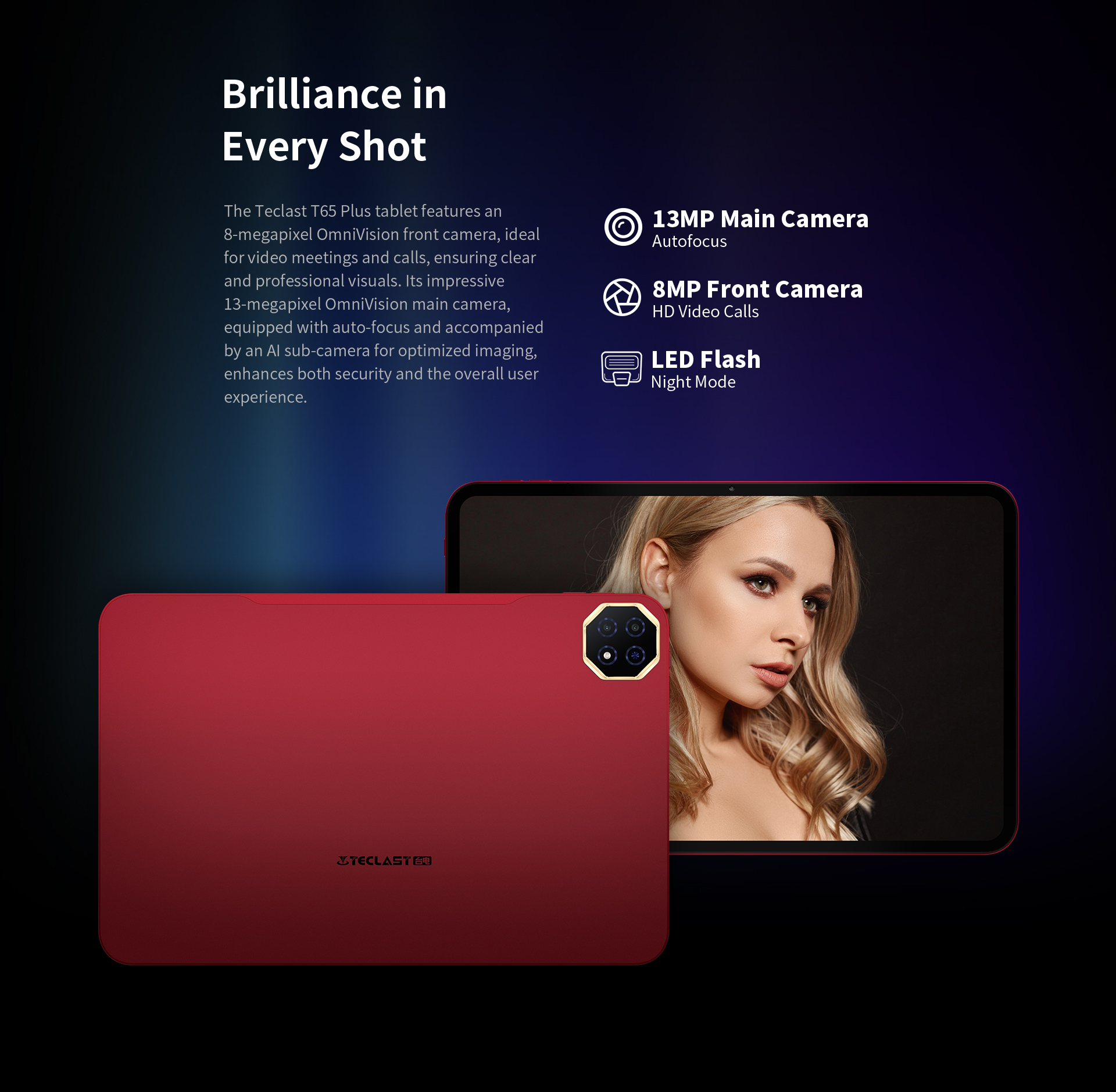 [Capture with AI Clarity] Capture crisp, vivid moments with the T65 Plus’s 13MP AI Camera (rear, autofocus) and refined 8MP Front Camera, ideal for sharp images and seamless video calls.