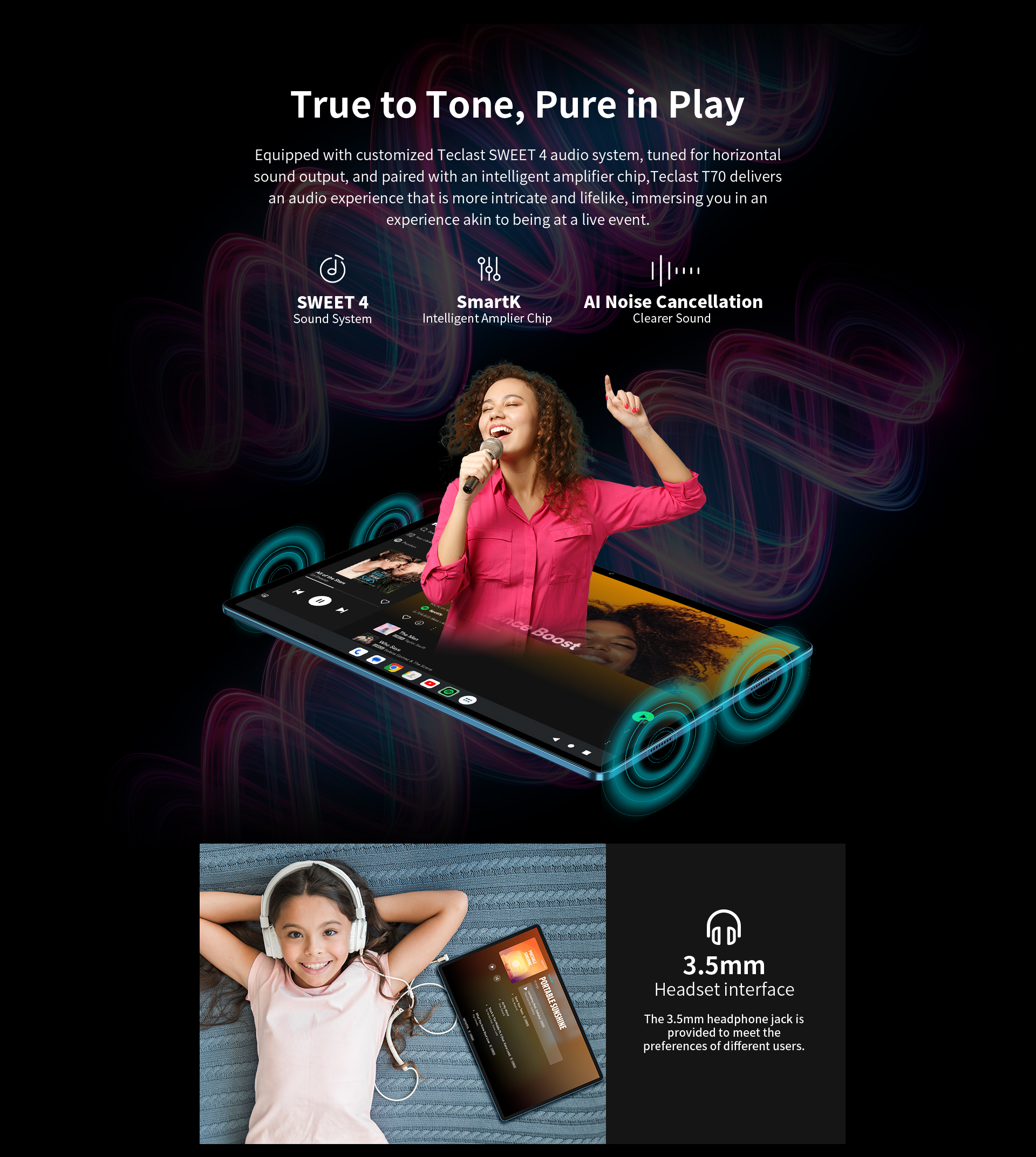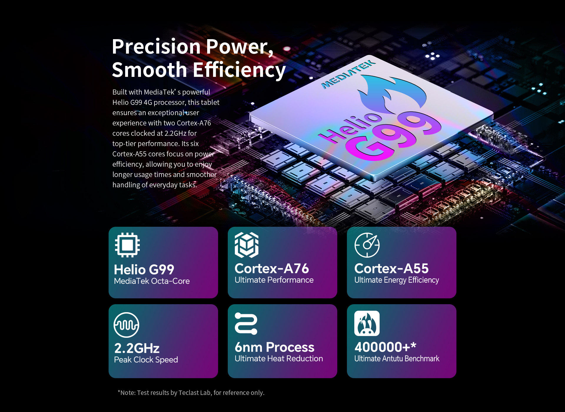 [Helio G99 Power] At the heart of the T70 lies the formidable Helio G99 processor, setting a new standard for speed and efficiency. With up to 20GB RAM (8GB base plus a 12GB RAM Expansion) and 256GB storage, expandable to a colossal 1TB, this tablet is engineered to handle the most demanding applications and multitasking with ease, defining the apex of high-end computing.