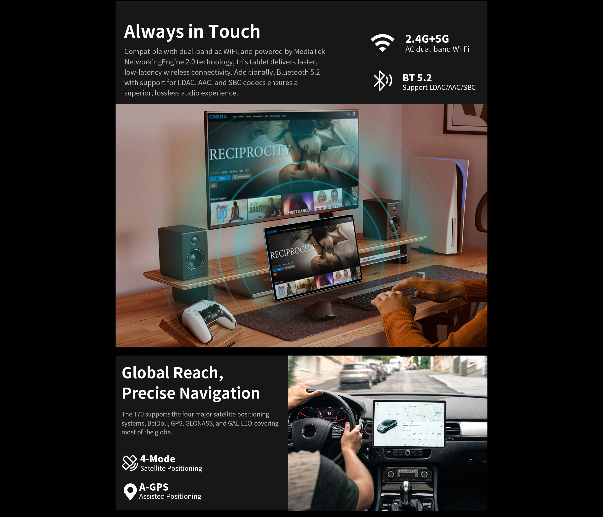 [Elegant Durability] The T70 redefines elegance with its svelte 7.8mm silhouette, embodying the zenith of design and durability. Its unibody, meticulously sculpted from CNC-machined aluminum and adorned with a sophisticated sandblasted finish, stands as a testament to luxury and resilience.