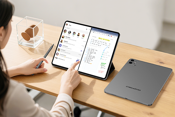 AI ในการทำงาน / จอแสดงผลอัตราการรีเฟรช 90Hz ขนาด 11 นิ้ว / RAM สูงสุด 16GB และ UFS3 ขนาด 128GB. 0 Storage / Advance Android 15 พร้อม Teclastโหมด OS·PC