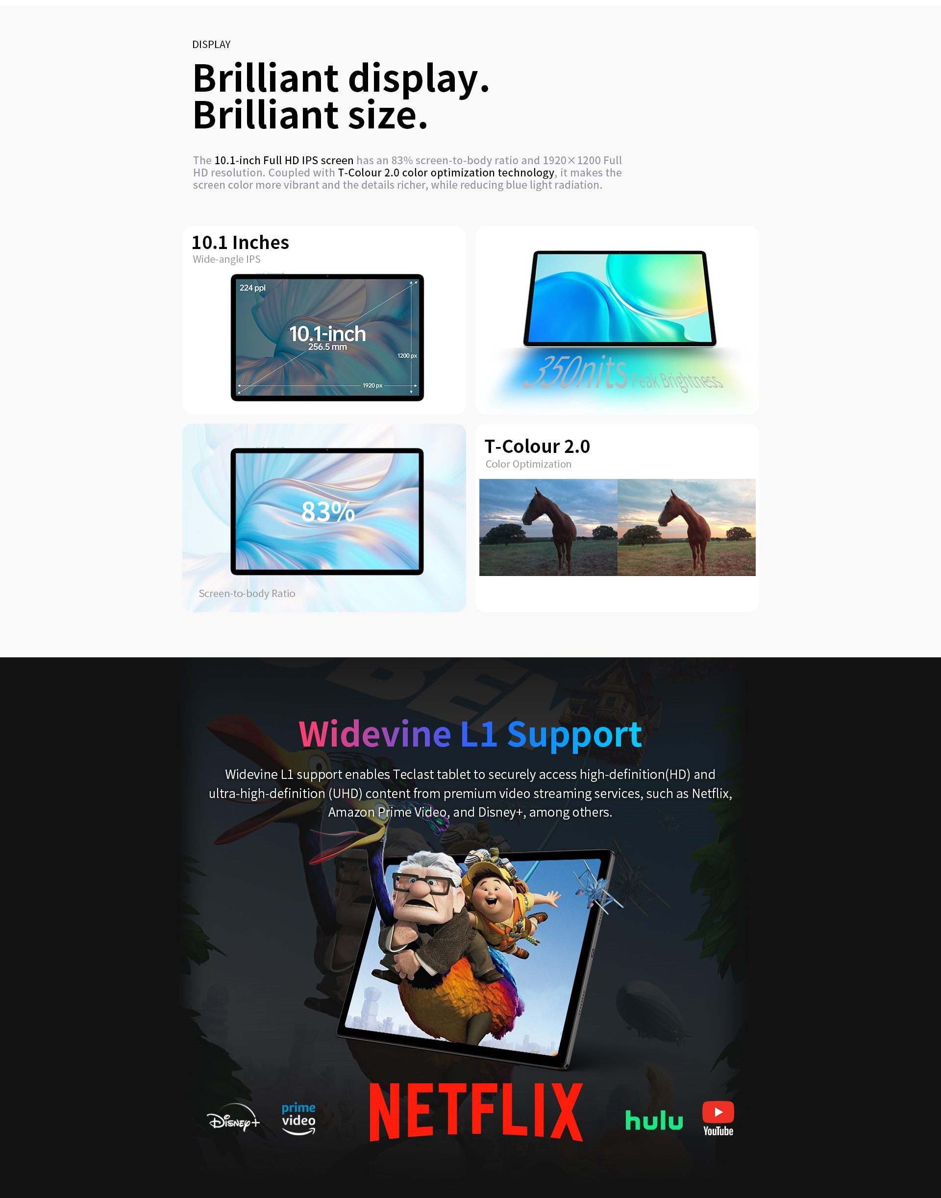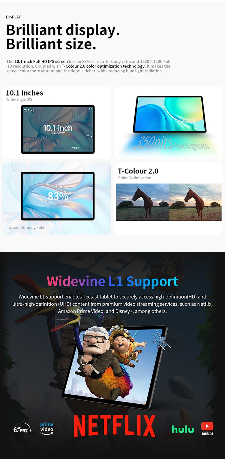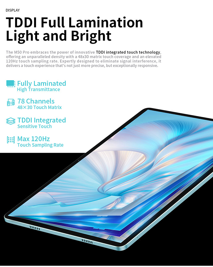 [อัตราส่วนหน้าจอต่อร่างกายสูง] M50 Pro มีหน้าจอ IPS ขนาด 10.1 นิ้ว ความละเอียด 1920 x 1200 และความสว่างสูงสุด 350nits อัตราส่วนหน้าจอต่อร่างกายที่น่าประทับใจ 83% ช่วยให้มั่นใจได้ถึงประสบการณ์การรับชมที่น่าหลงใหลและดื่มด่ำ
