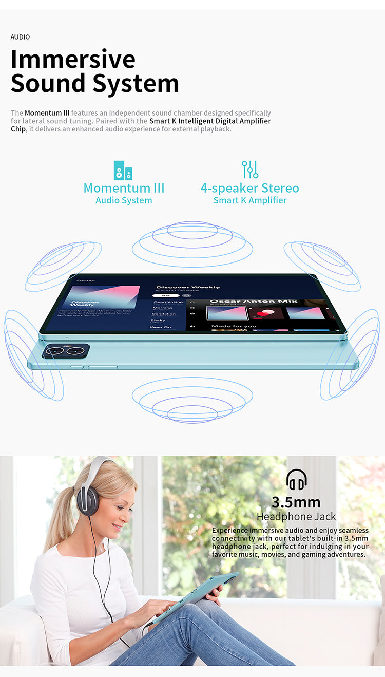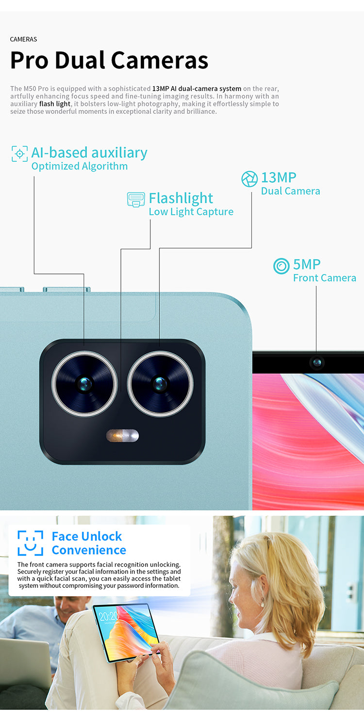 [โปรเซสเซอร์ทรงพลัง] M50 Pro มาพร้อมกับโปรเซสเซอร์ octa-core T616 อันทรงพลัง ซึ่งทั้งประหยัดพลังงานและประสิทธิภาพสูง และ GPU Mail-G57 ยกระดับประสบการณ์ภาพและเสียงของคุณ