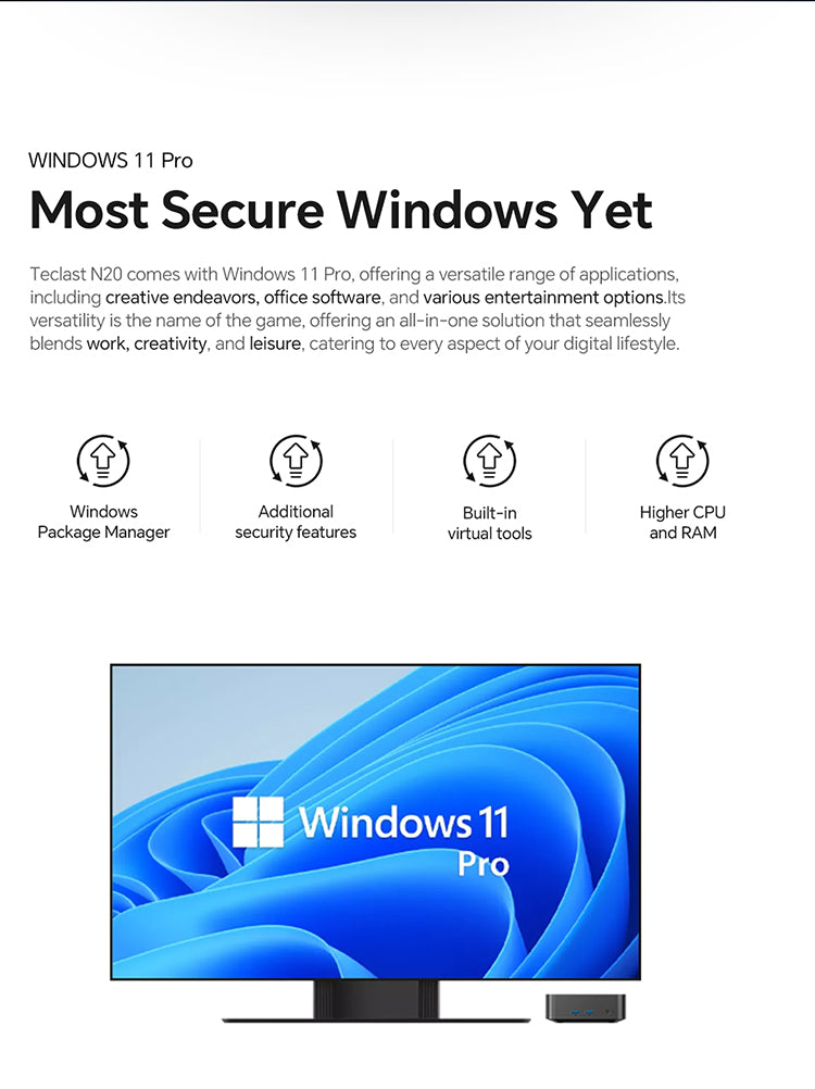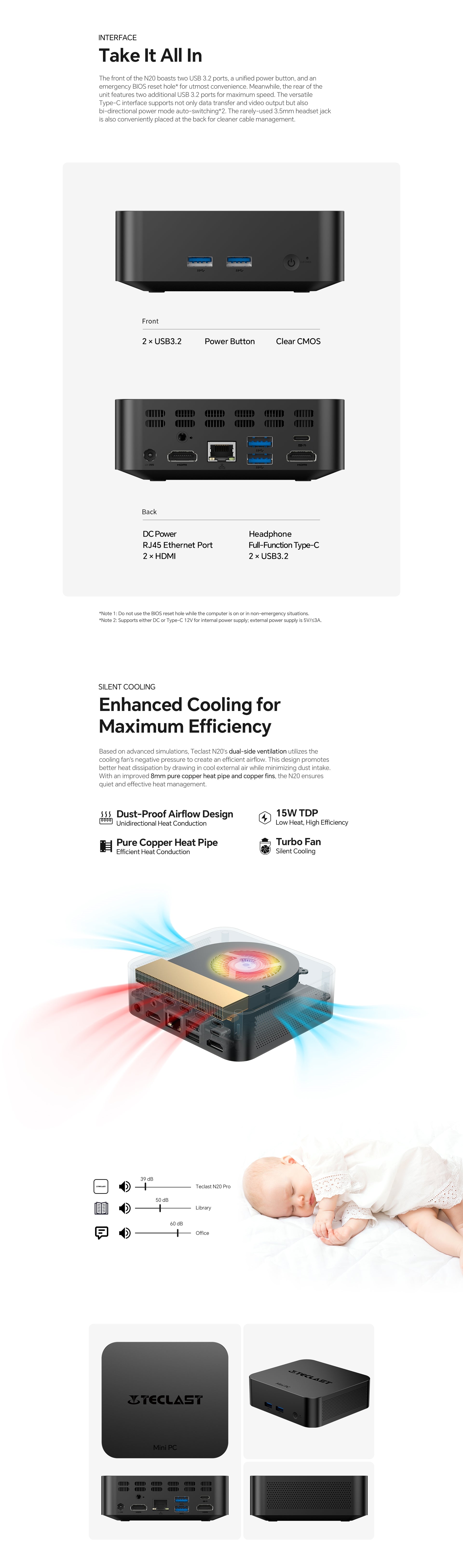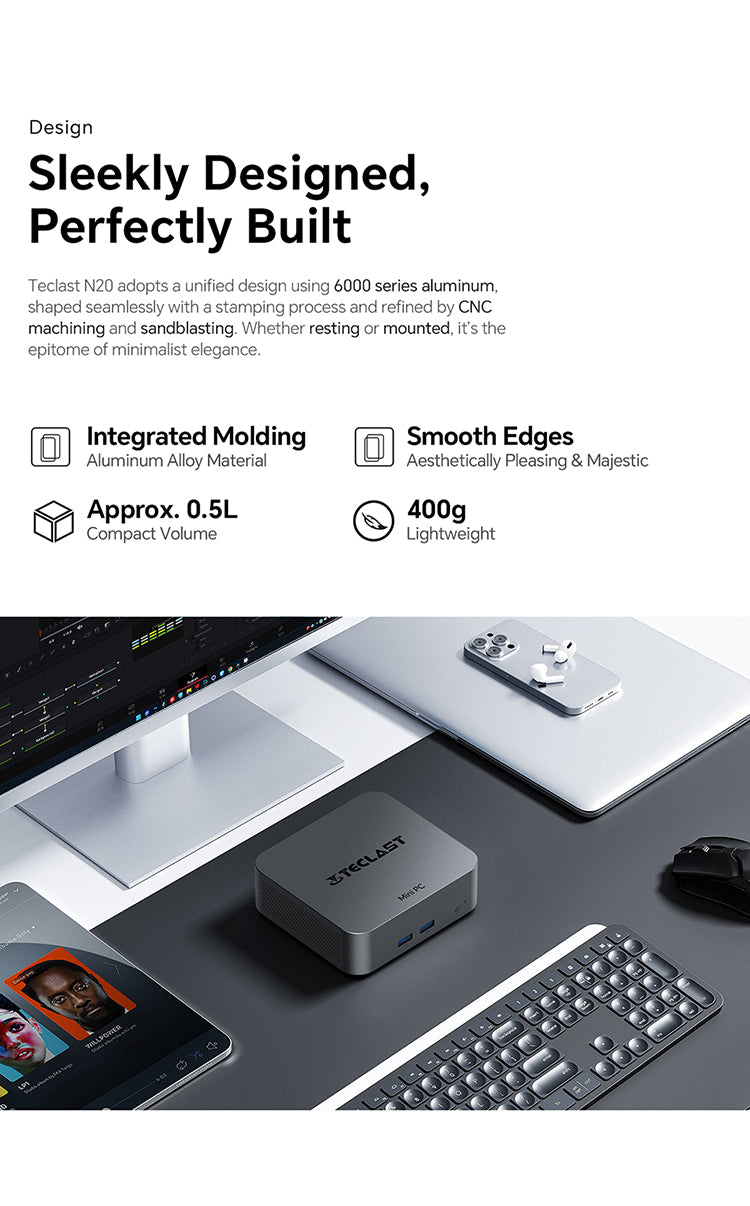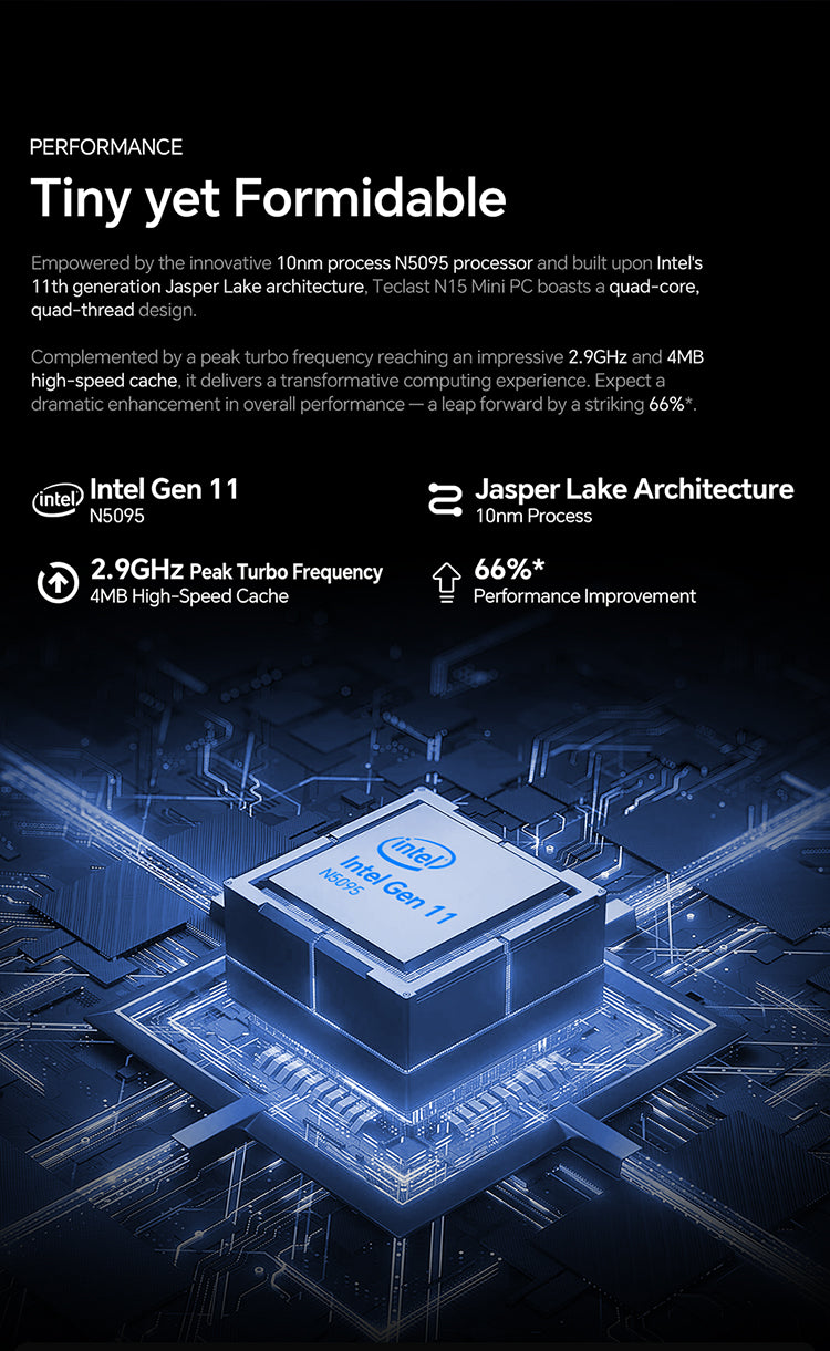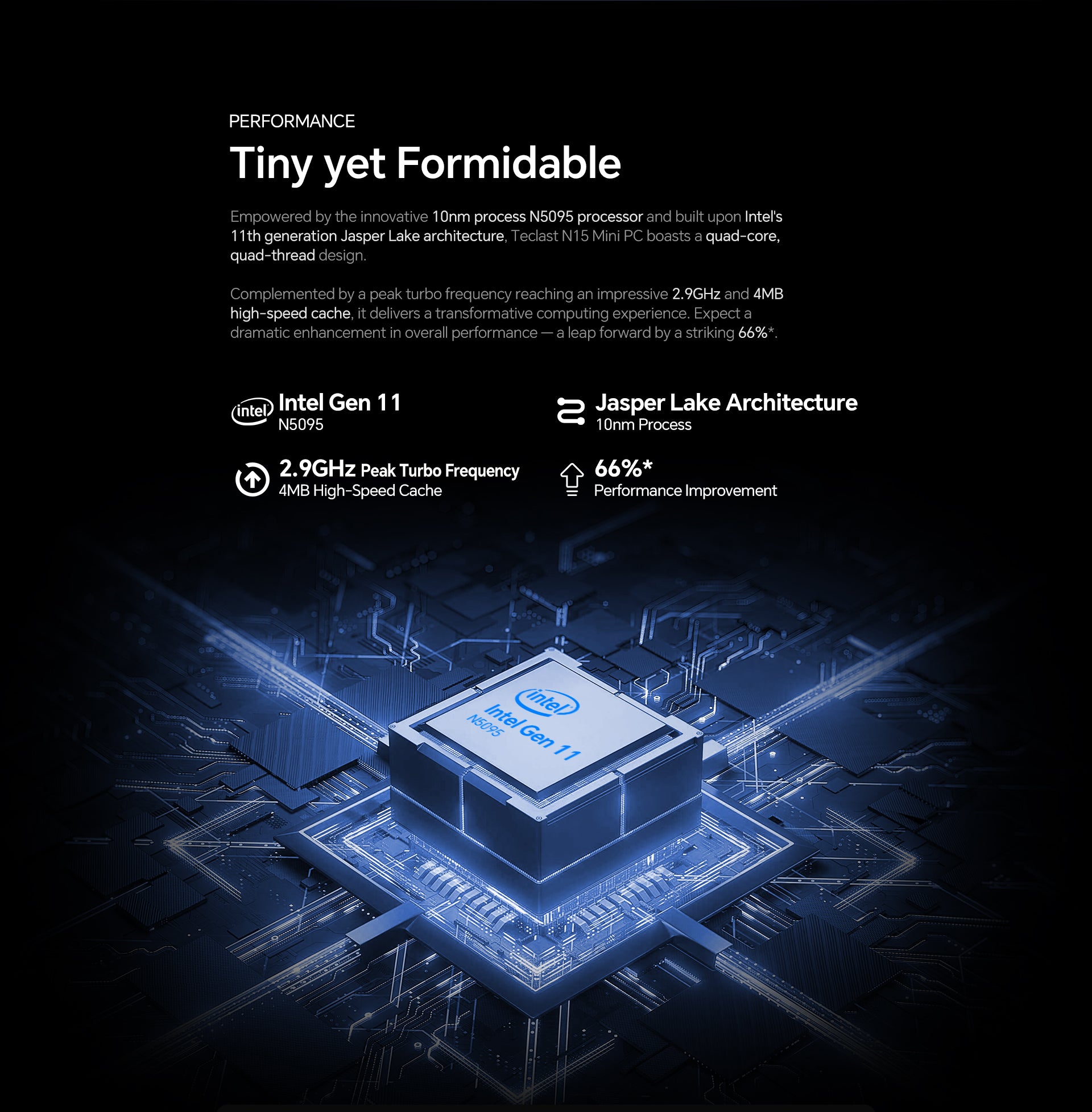 [CPU ประสิทธิภาพสูง] N20 ภูมิใจนำเสนอโปรเซสเซอร์ Intel N5095 จากซีรีส์ Jasper Lake พร้อมการตั้งค่าแบบ Quad-Core สูงสุดที่ 2.9GHz เพื่อประสิทธิภาพที่เร็วขึ้น
