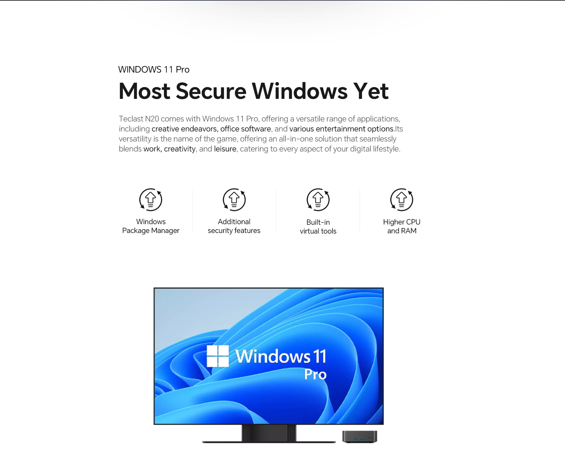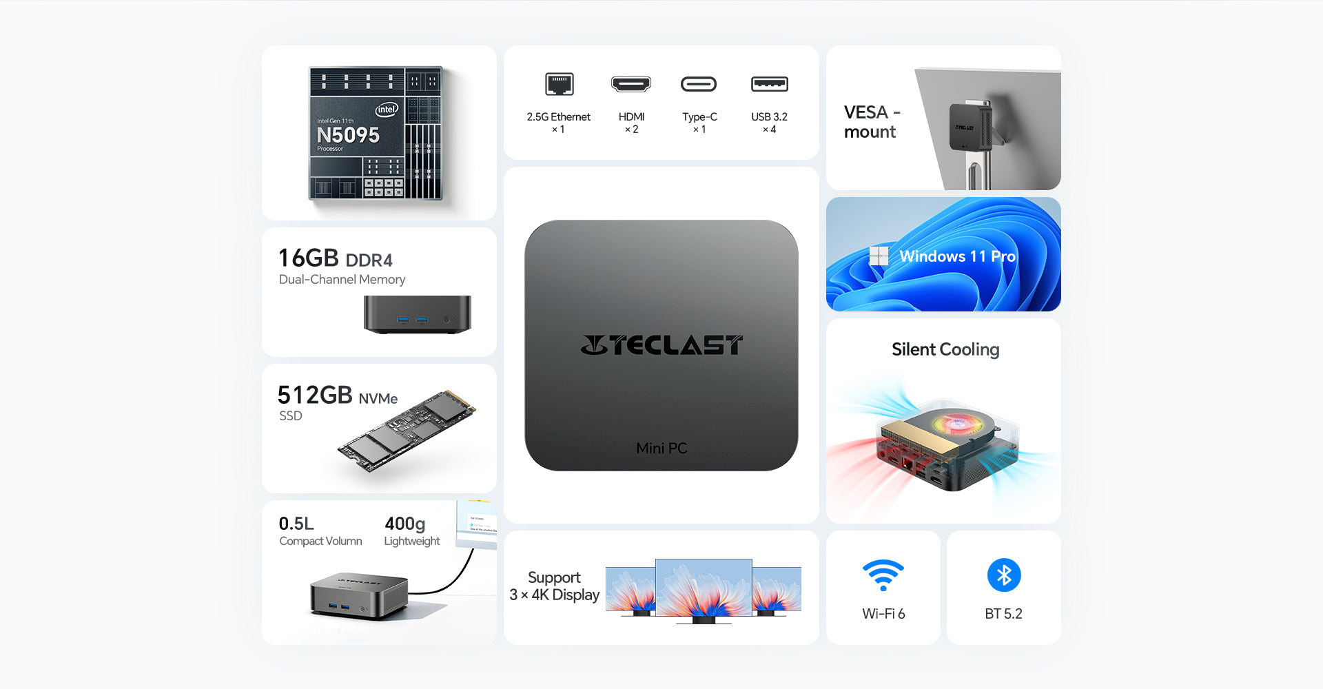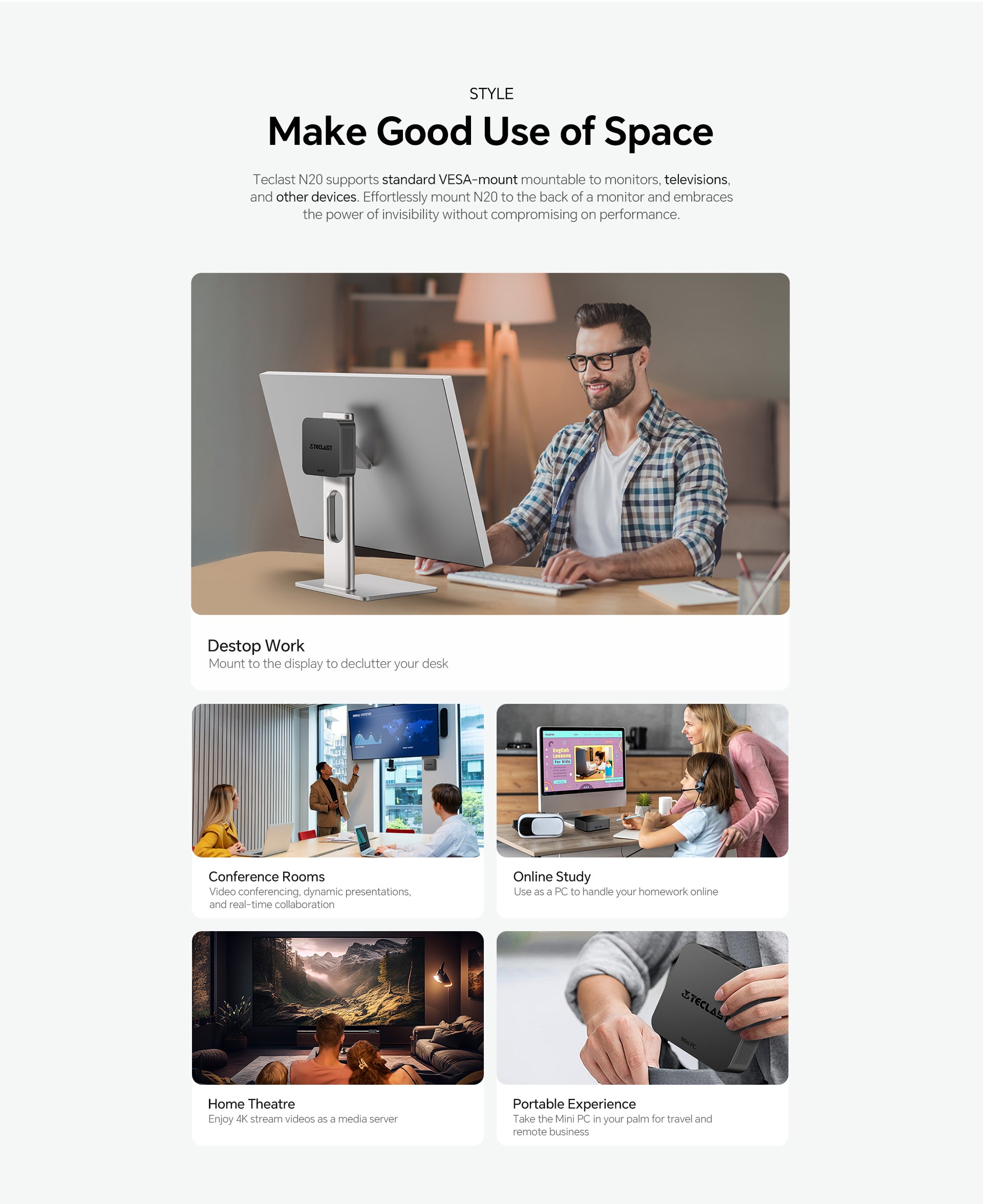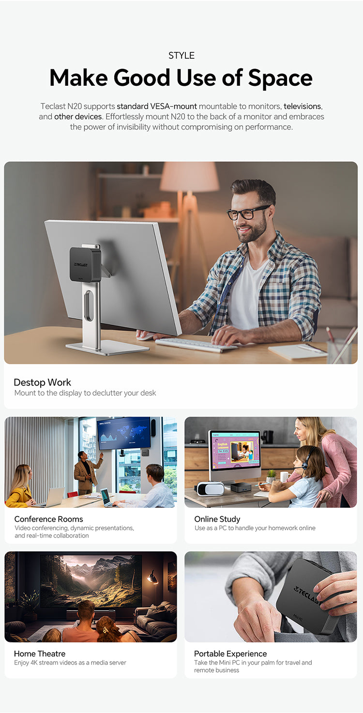 [CPU ประสิทธิภาพสูง] N20 ภูมิใจนำเสนอโปรเซสเซอร์ Intel N5095 จากซีรีส์ Jasper Lake พร้อมการตั้งค่าแบบ Quad-Core สูงสุดที่ 2.9GHz เพื่อประสิทธิภาพที่เร็วขึ้น