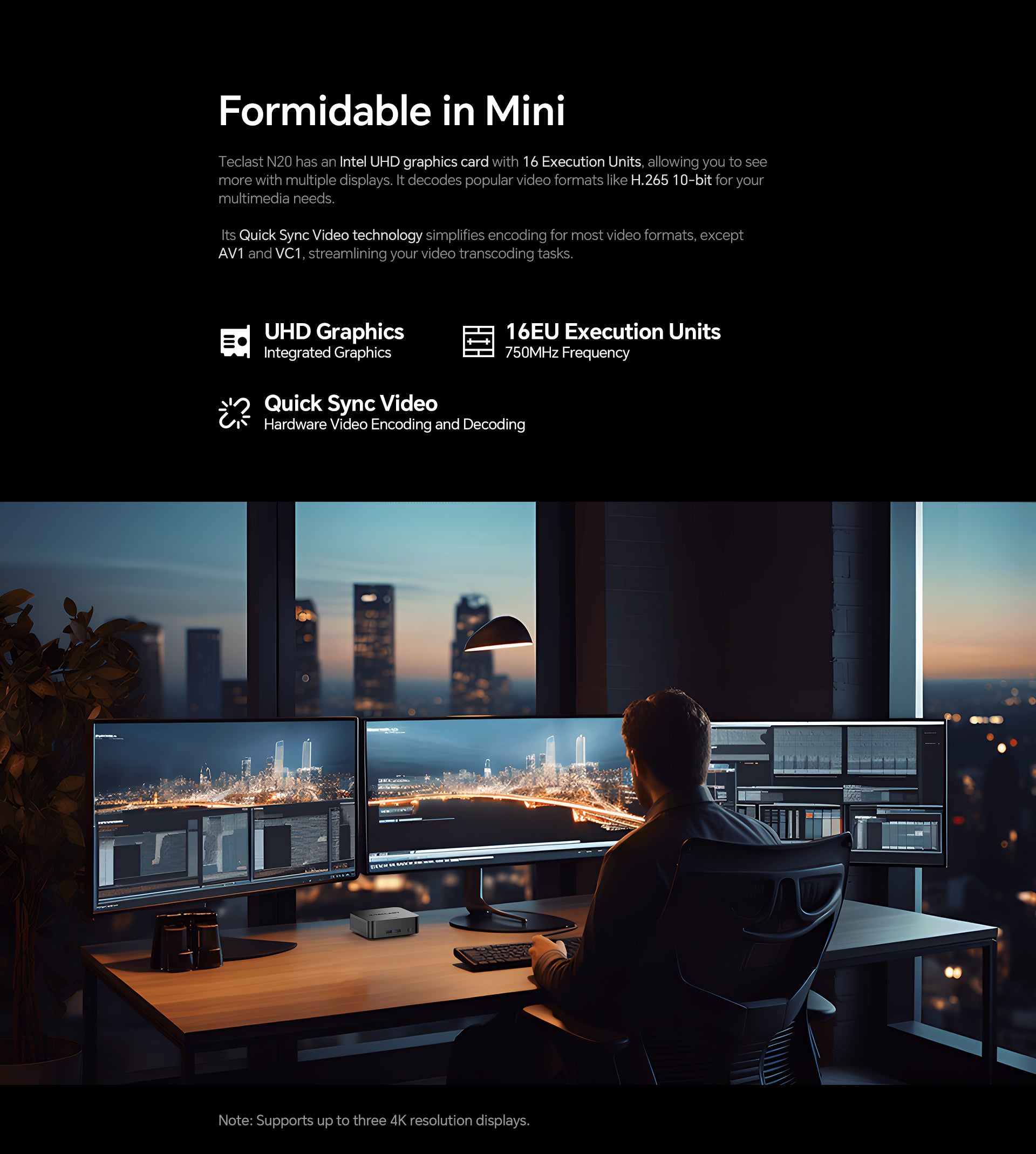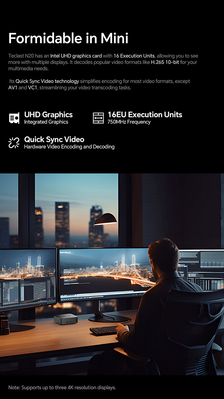 [กราฟิกที่อัปเกรด] ด้วยกราฟิก Intel UHD รุ่นที่ 11 พร้อมหน่วยปฏิบัติการ 16 หน่วย N20 มีเทคโนโลยีวิดีโอ Quick Sync เพื่อลดความซับซ้อนของการเข้ารหัสสำหรับรูปแบบวิดีโอส่วนใหญ่