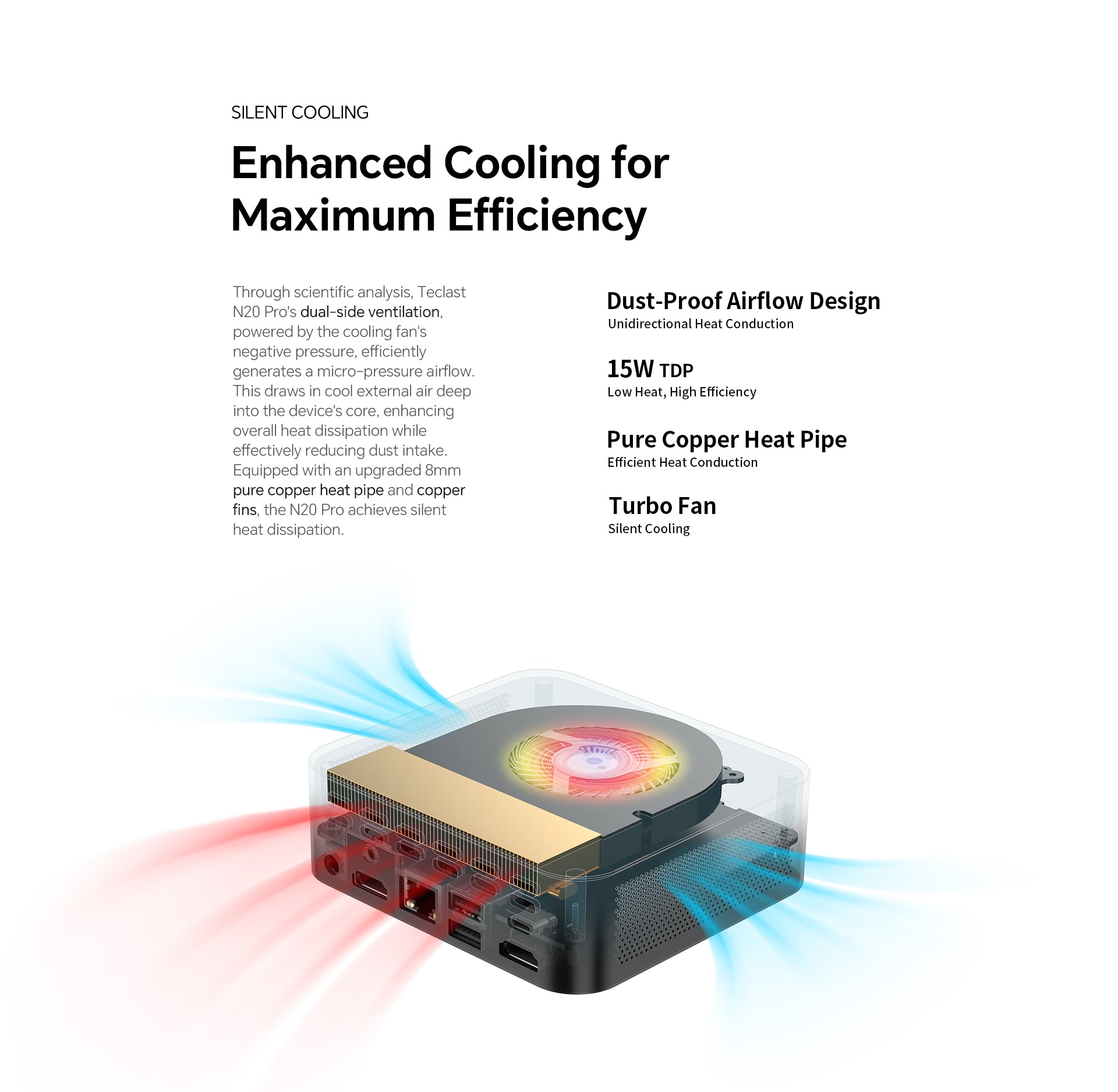 [ระบบระบายความร้อนแบบเงียบ] ท่อความร้อนทองแดงขนาด 8 มม. พร้อมครีบช่วยให้ระบายความร้อนได้เงียบและมีประสิทธิภาพ โดยรักษาประสิทธิภาพสูงสุดอย่างเงียบ ๆ