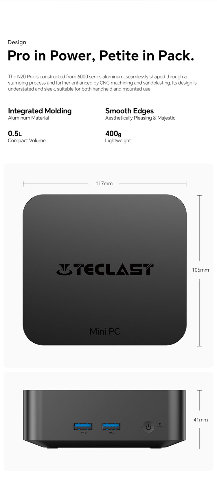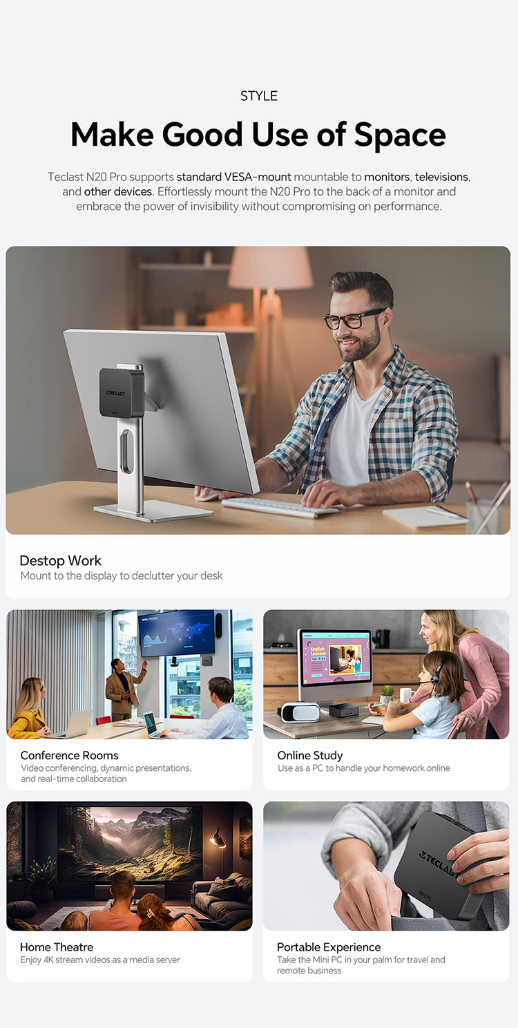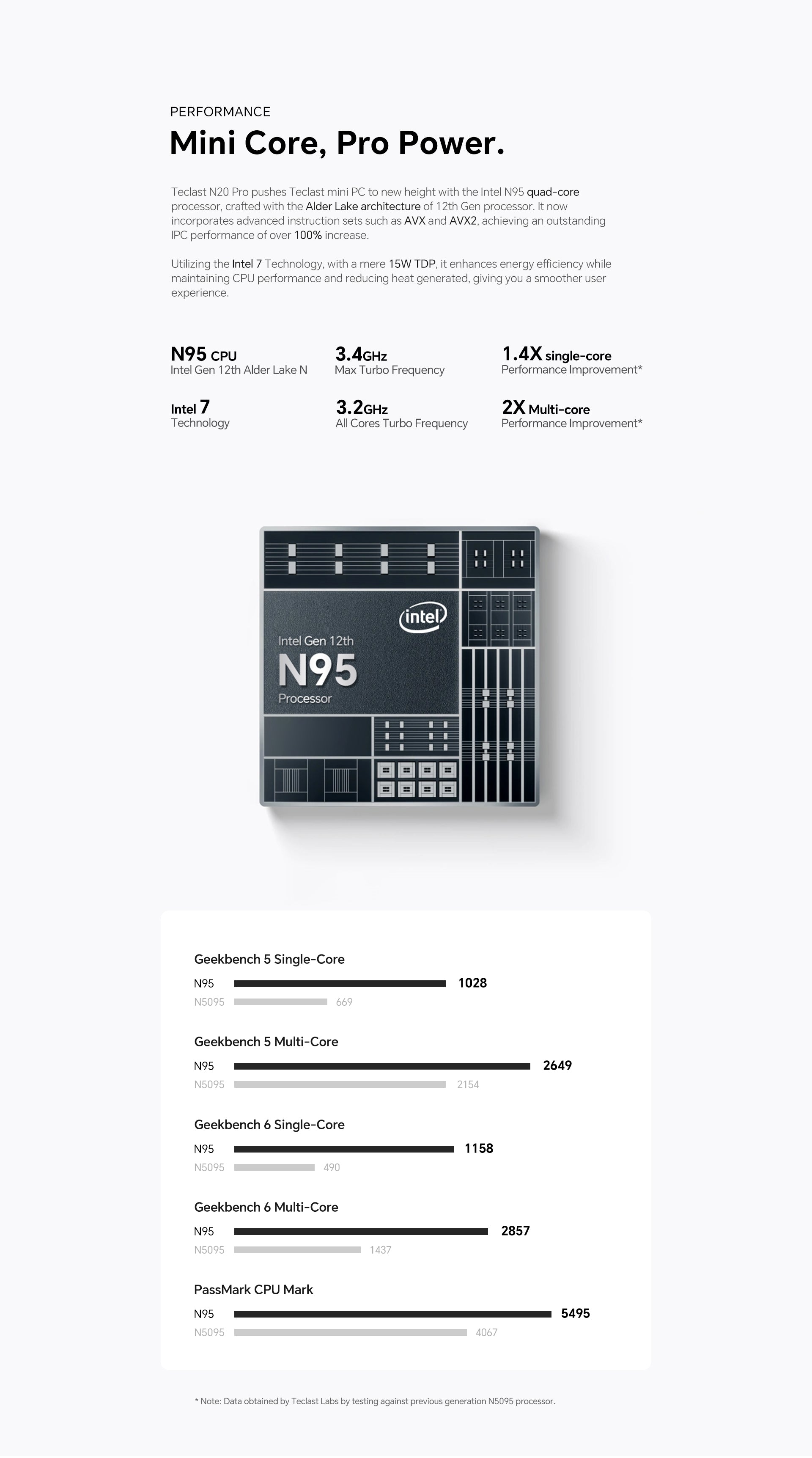 [CPU ประสิทธิภาพสูง] N20 Pro มีโปรเซสเซอร์ Intel N95 จากซีรีส์ Alder Lake รุ่นที่ 12 โดยมีการตั้งค่าแบบ Quad-Core สูงสุดที่ 34GHz เพื่อประสิทธิภาพที่เร็วขึ้น