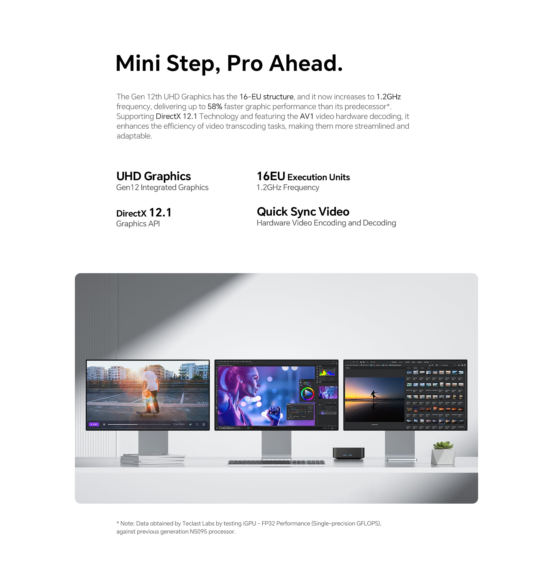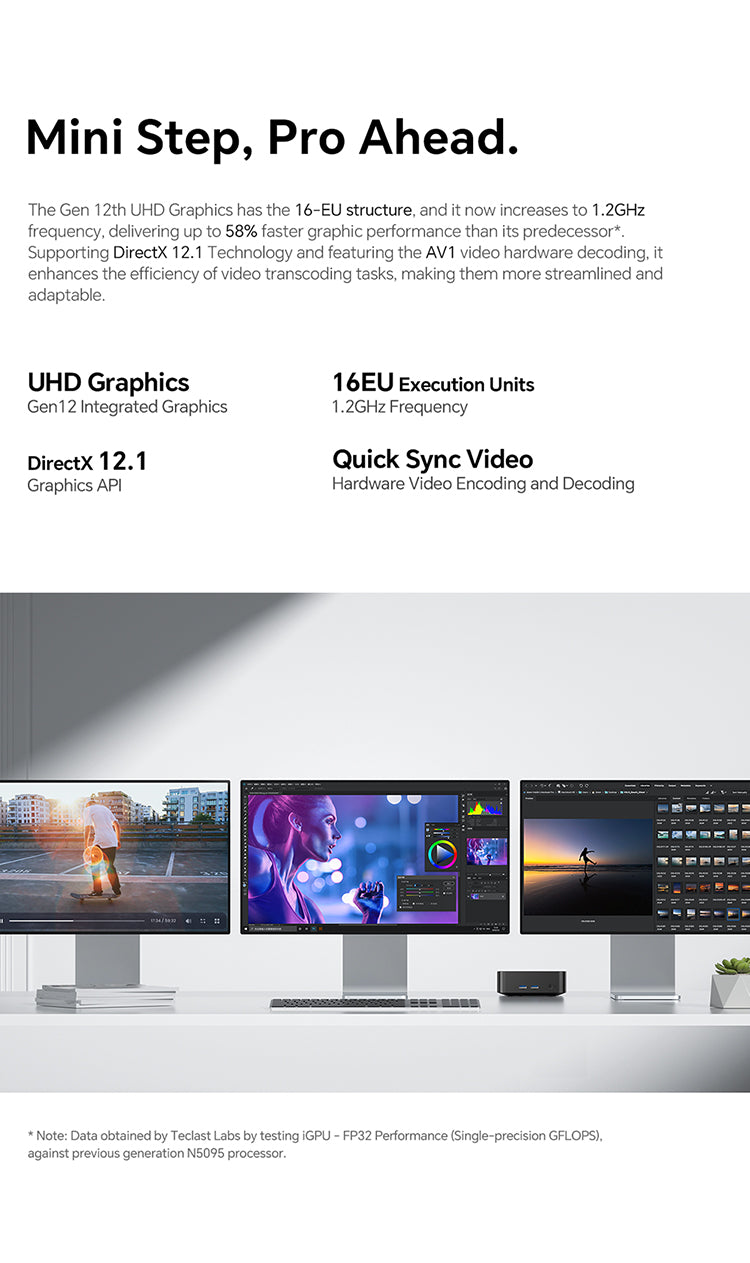 [กราฟิกที่อัปเกรด] นำเสนอกราฟิก Intel UHD เจนเนอเรชั่น 12 พร้อมหน่วยปฏิบัติการ 16 หน่วย N20 Pro มาถึง 12GHz มอบประสิทธิภาพเพิ่มขึ้น 58% และรองรับ DirectX 12 ขั้นสูง1 และ AV1 ถอดรหัส