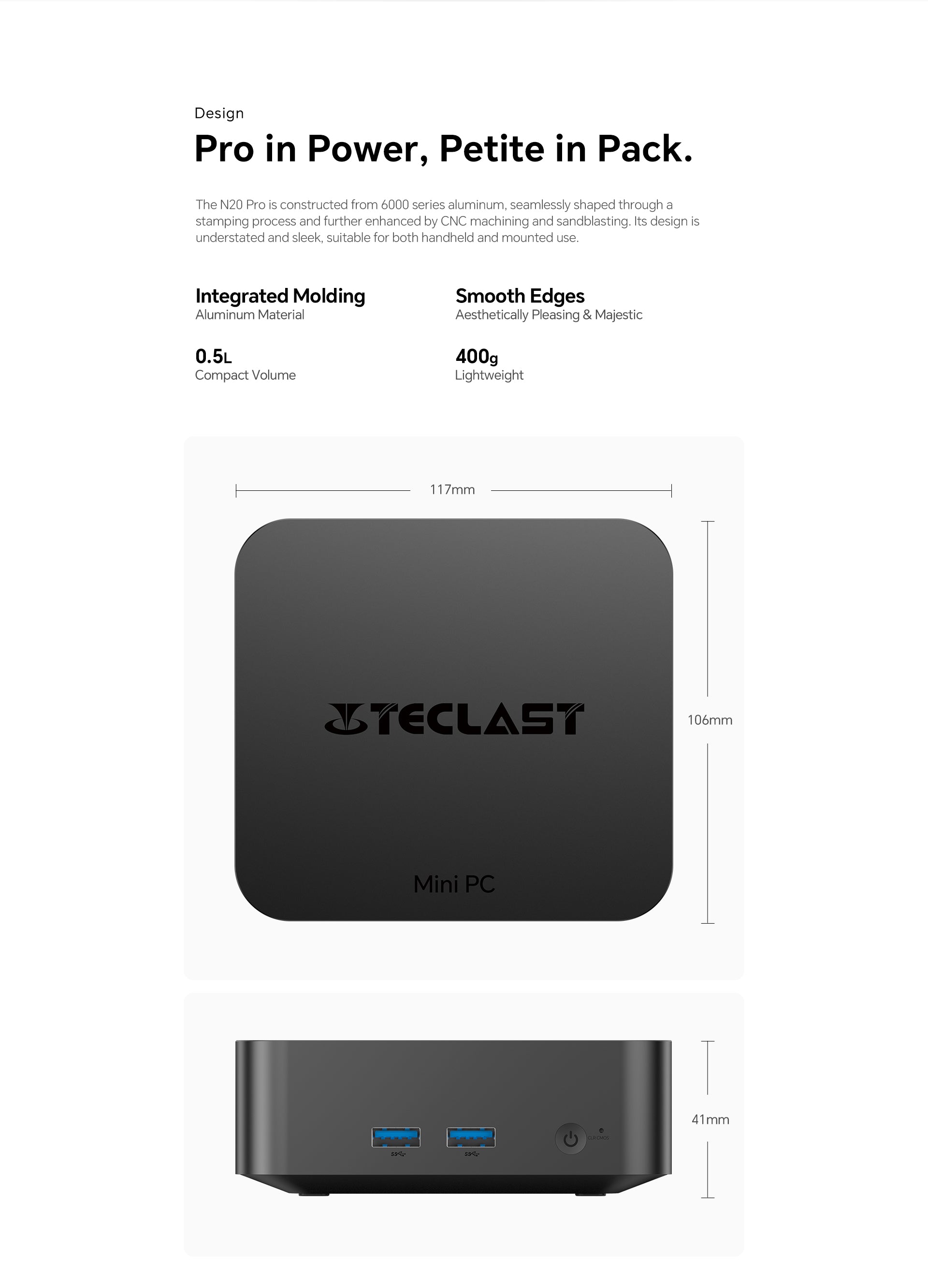 [กะทัดรัดและน้ำหนักเบา] หุ้มด้วยอะลูมิเนียมอัลลอยด์ที่ทนทาน N20 Pro มีค่า 0ปริมาตร 5 ลิตร น้ำหนักเพียง 400 กรัม นิยามของการพกพาโดยไม่ทำให้ความทนทานลดลง