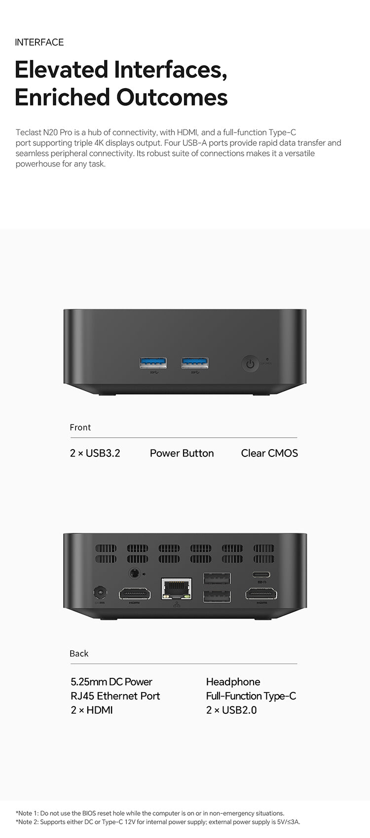 Power Interface: DC 5.5×2.5mm