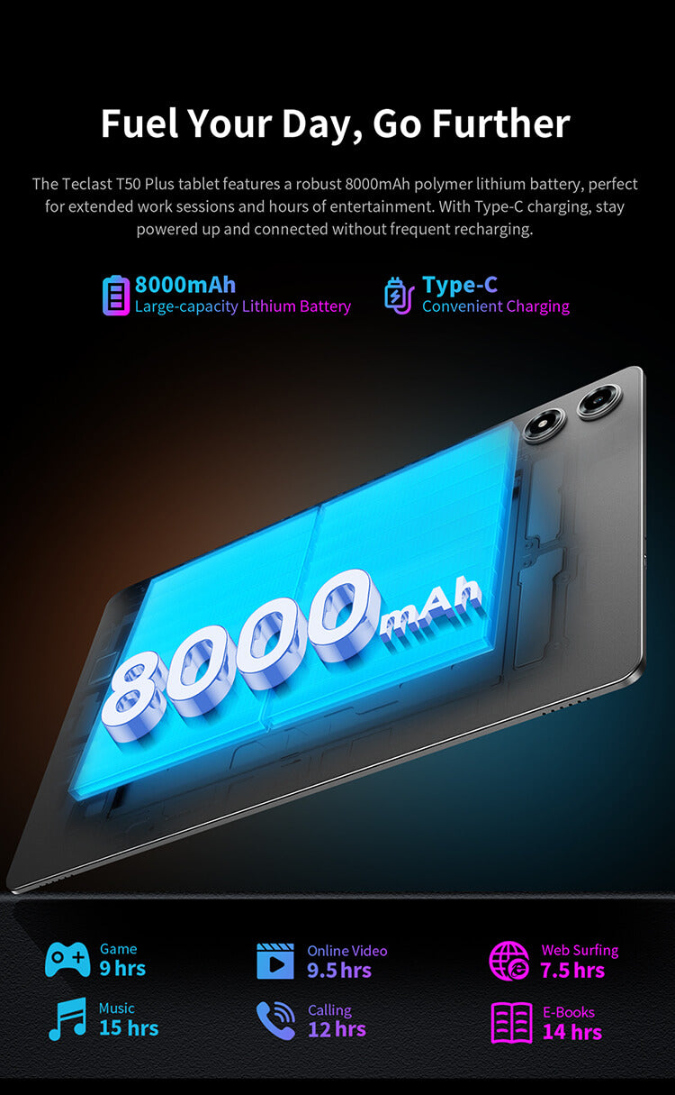 [การใช้งานเพิ่มเติม] แบตเตอรี่ 8000mAh ใช้งานได้นานถึง 10 ชั่วโมง, ทำให้คุณมีพลังตลอดทั้งวัน.