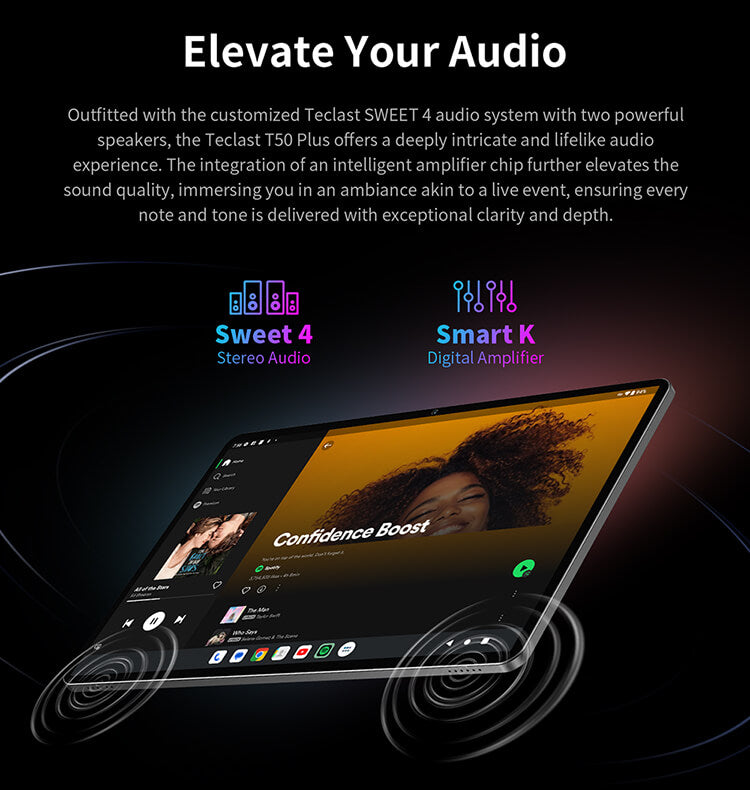 [เสียงที่ดื่มด่ำ] สัมผัสคุณภาพเสียงที่เหนือกว่าด้วยระบบเสียง SWEET 4, พร้อมด้วยระบบเสียงสเตอริโอและเครื่องขยายเสียง Smart K สำหรับไดนามิก, ชัดเจน, และเสียงที่ทรงพลัง.