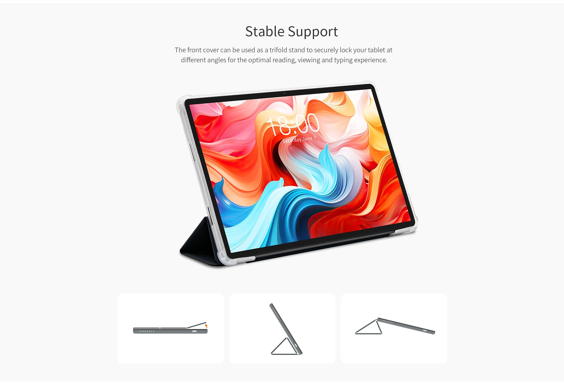 ฝาครอบด้านหน้าสามารถใช้เป็นขาตั้งสามทบเพื่อล็อคแท็บเล็ตของคุณอย่างปลอดภัยในมุมต่างๆ เพื่อการอ่าน การรับชม และ ประสบการณ์การพิมพ์