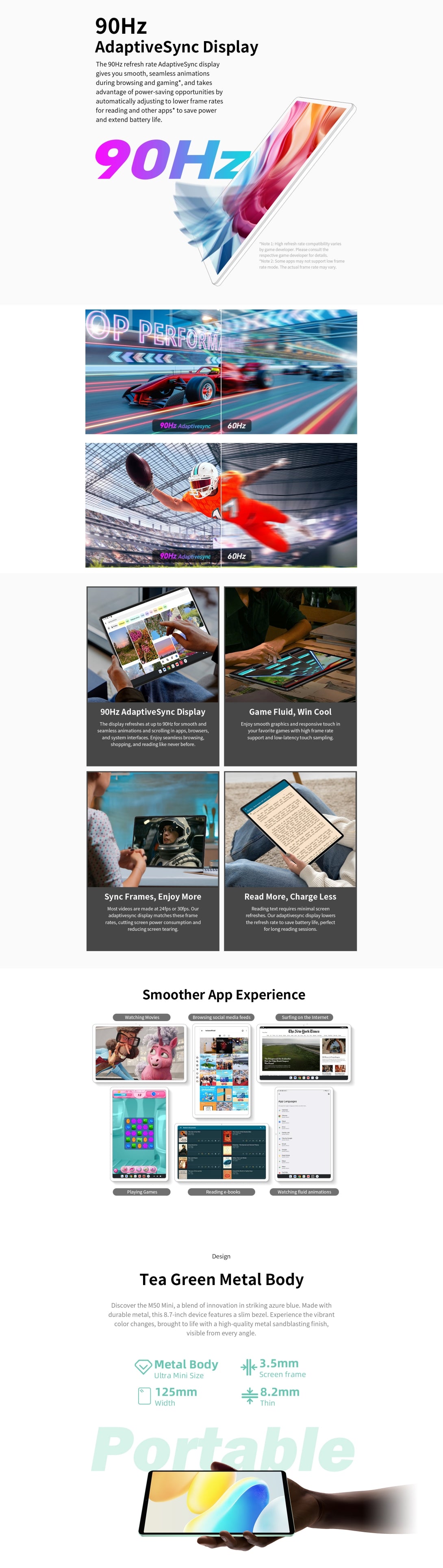 [Exceptional Display] The M50 Mini WiFi features an 8.7-inch IPS display with 1340x800 resolution and 16:10 aspect ratio for an immersive viewing experience. The 90Hz refresh rate ensures smooth, fluid visuals, perfect for both work and play.
