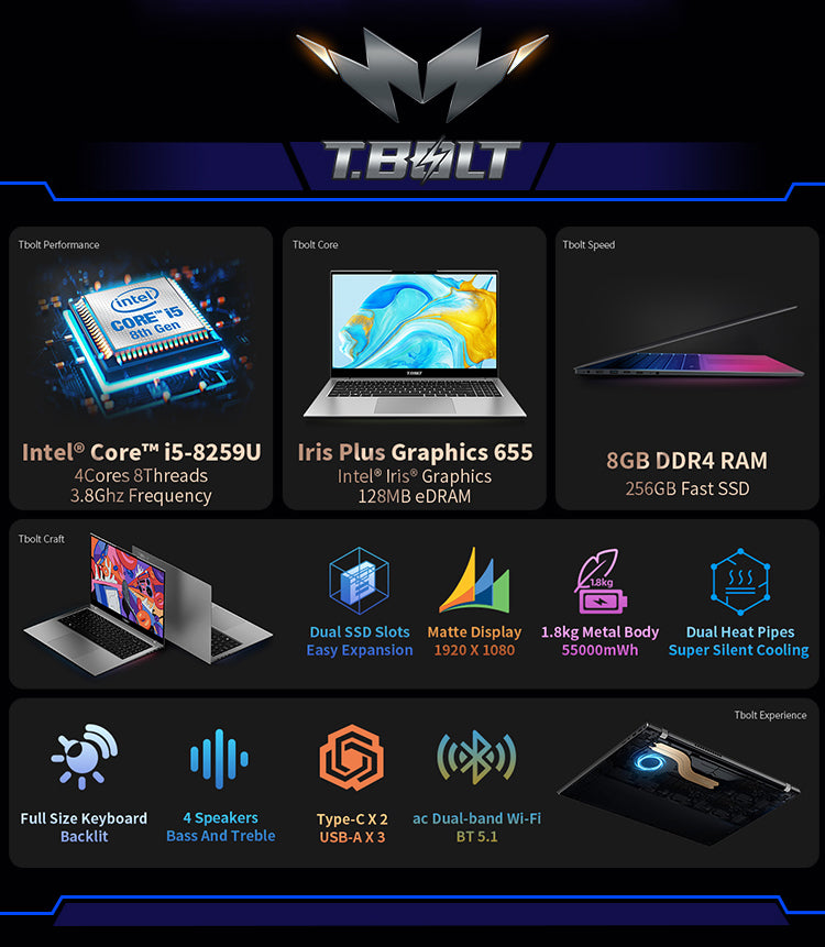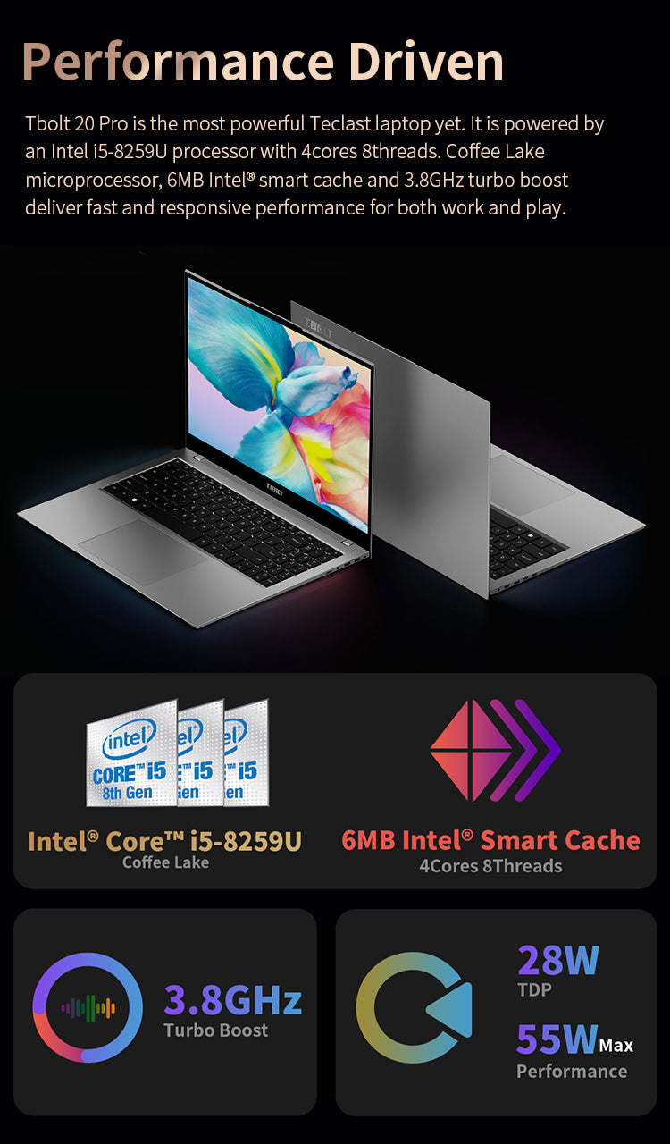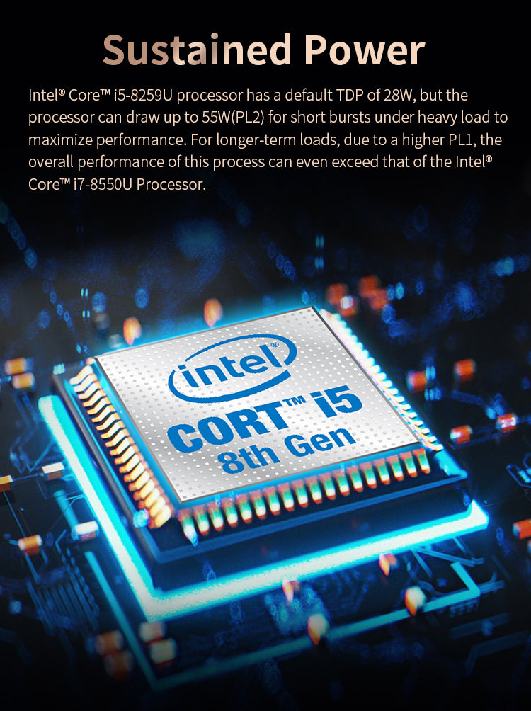 - 英特尔酷睿 i5-8259U,3.8GHz 睿频加速