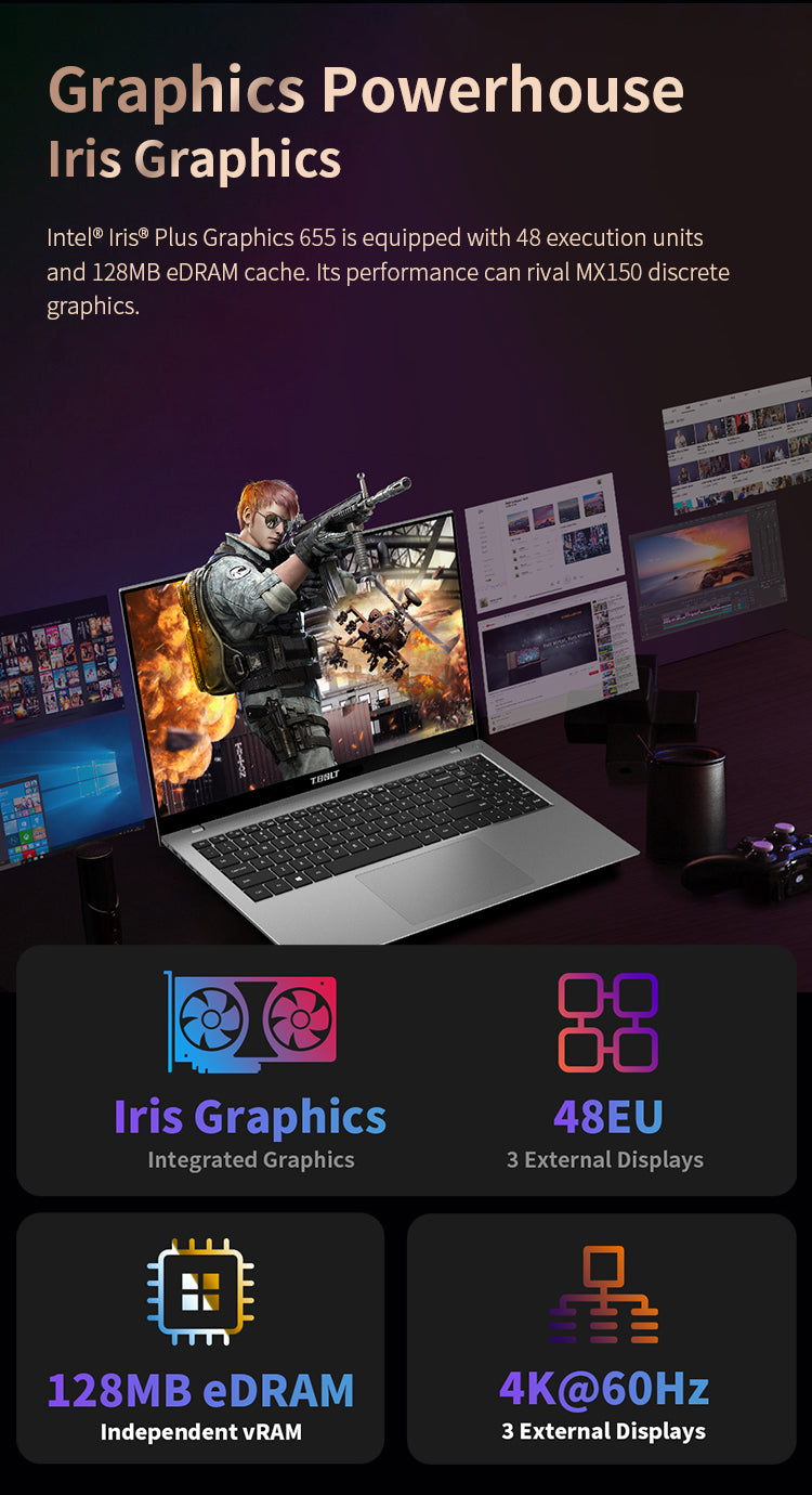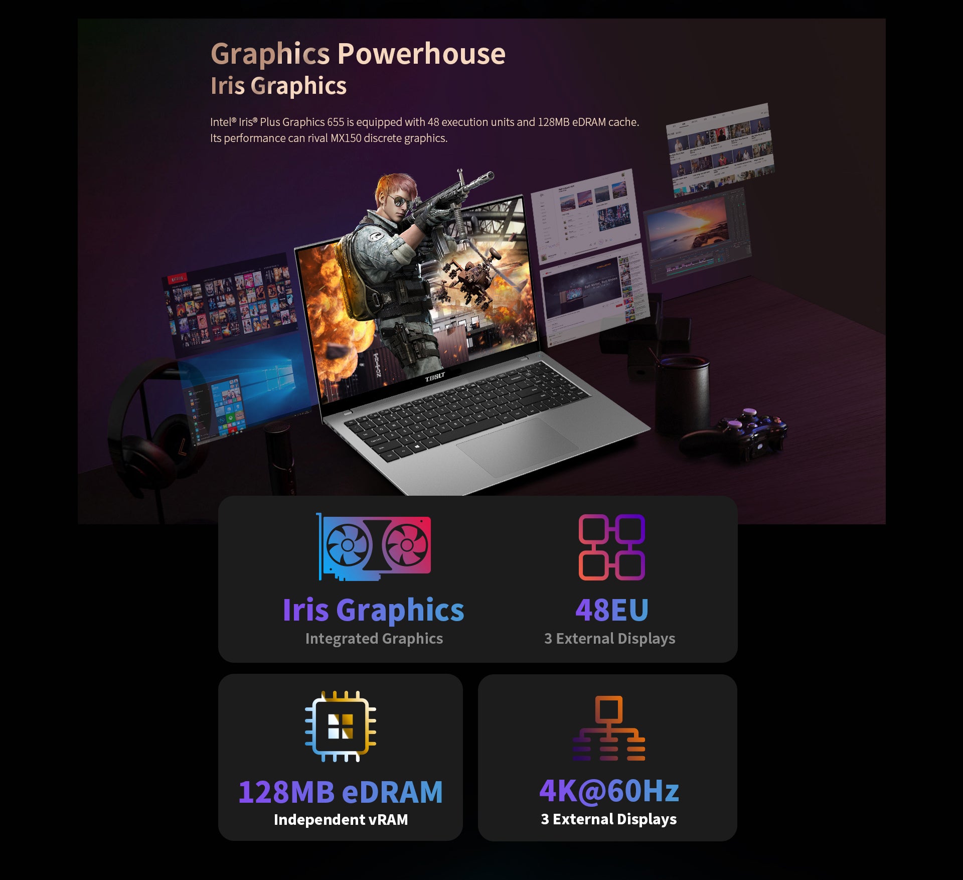 - Intel Iris Plus Graphics 655, 128MB eDRAM