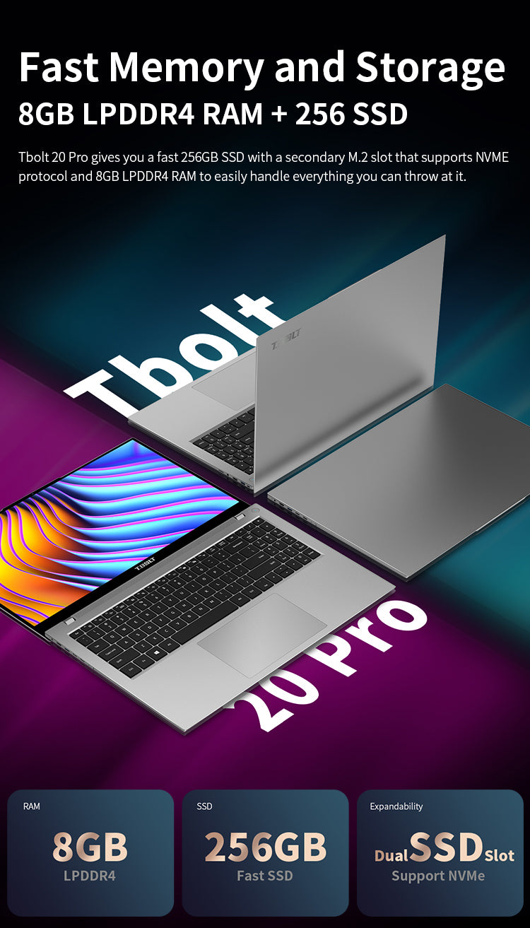 - 8GB LPDDR4 内存和 256 高速 SSDD