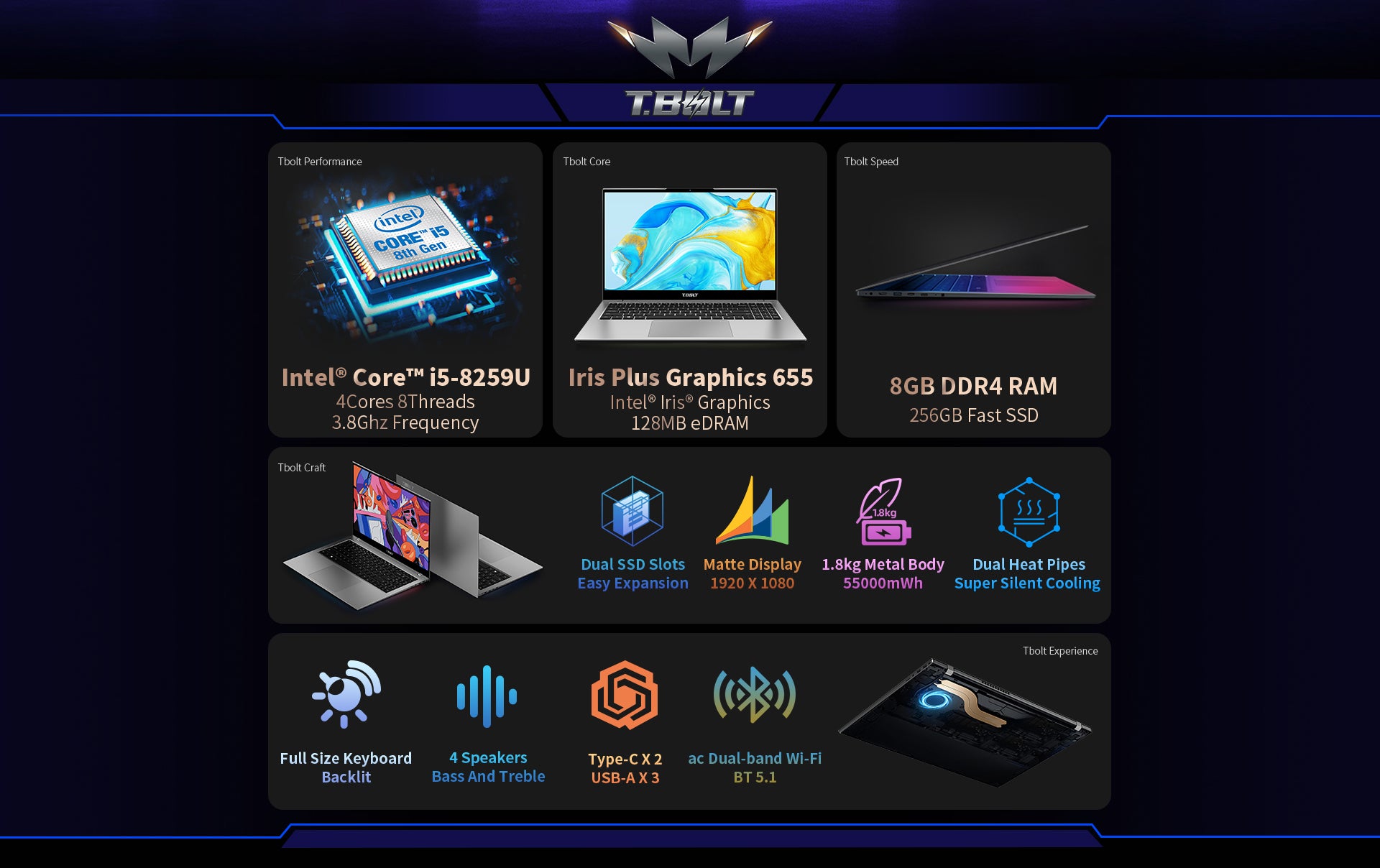 - 8GB LPDDR4 RAM,256 高速 SSD